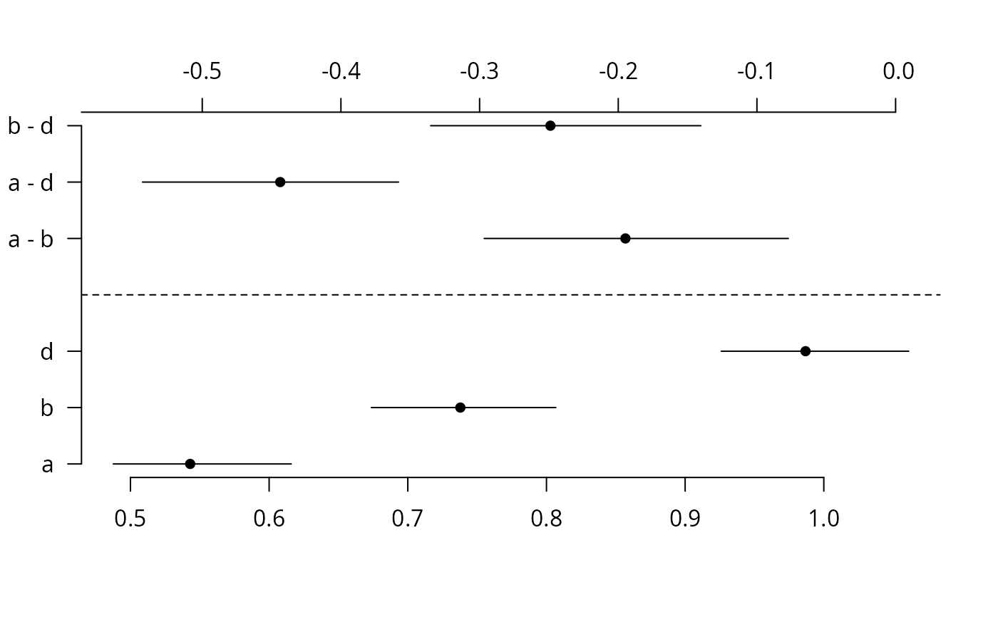 errbar(c('a','b','d','a - b','a - d','b - d'),