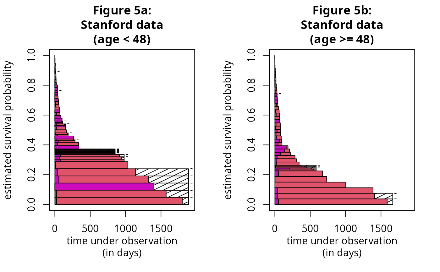 # now, draw age-stratified event history graph for Stanford heart data;