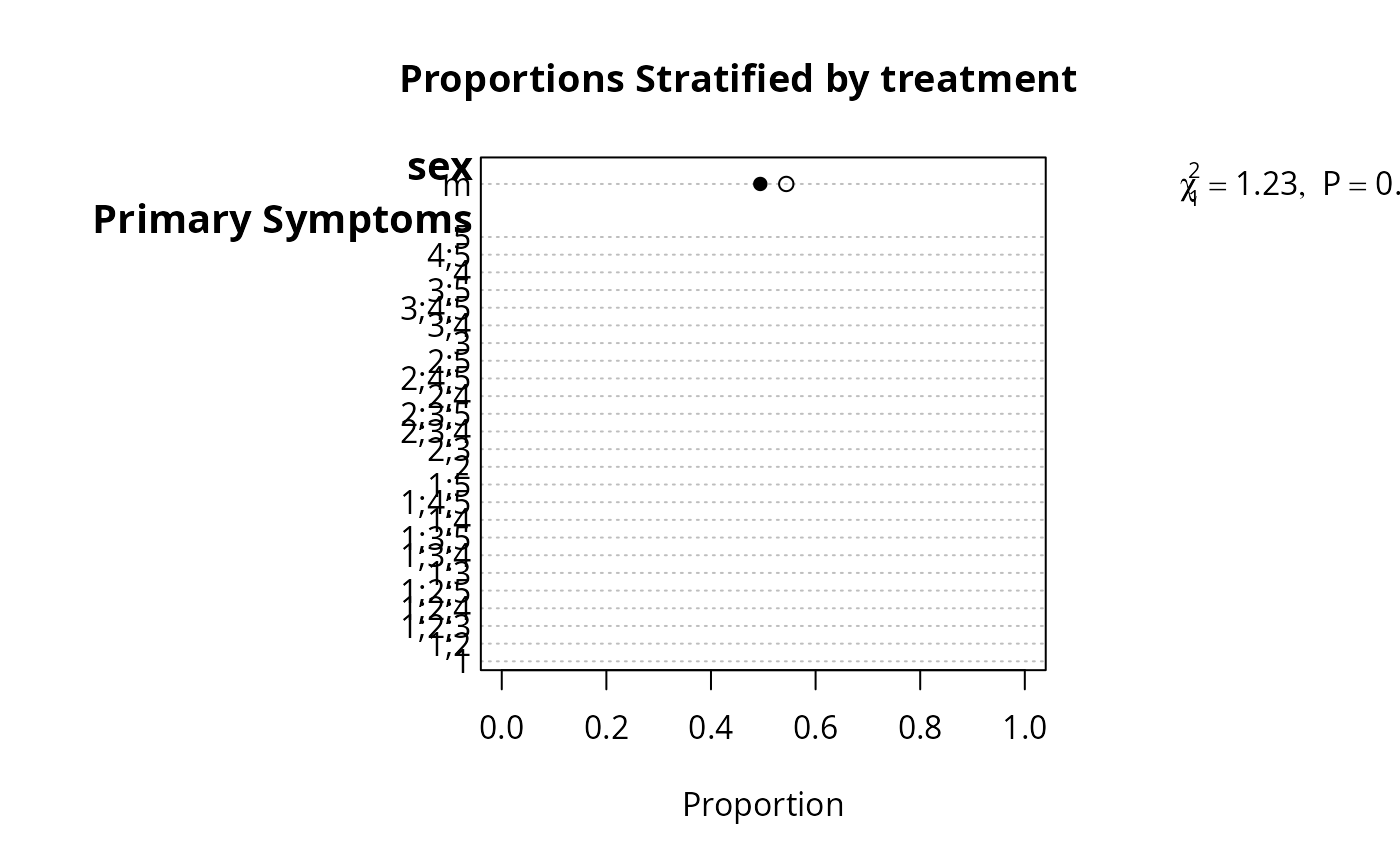#> |sex : m |253| 0.47 (64) | 0.53 (61) |Chi-square=0.87 d.f.=1 P=0.352|