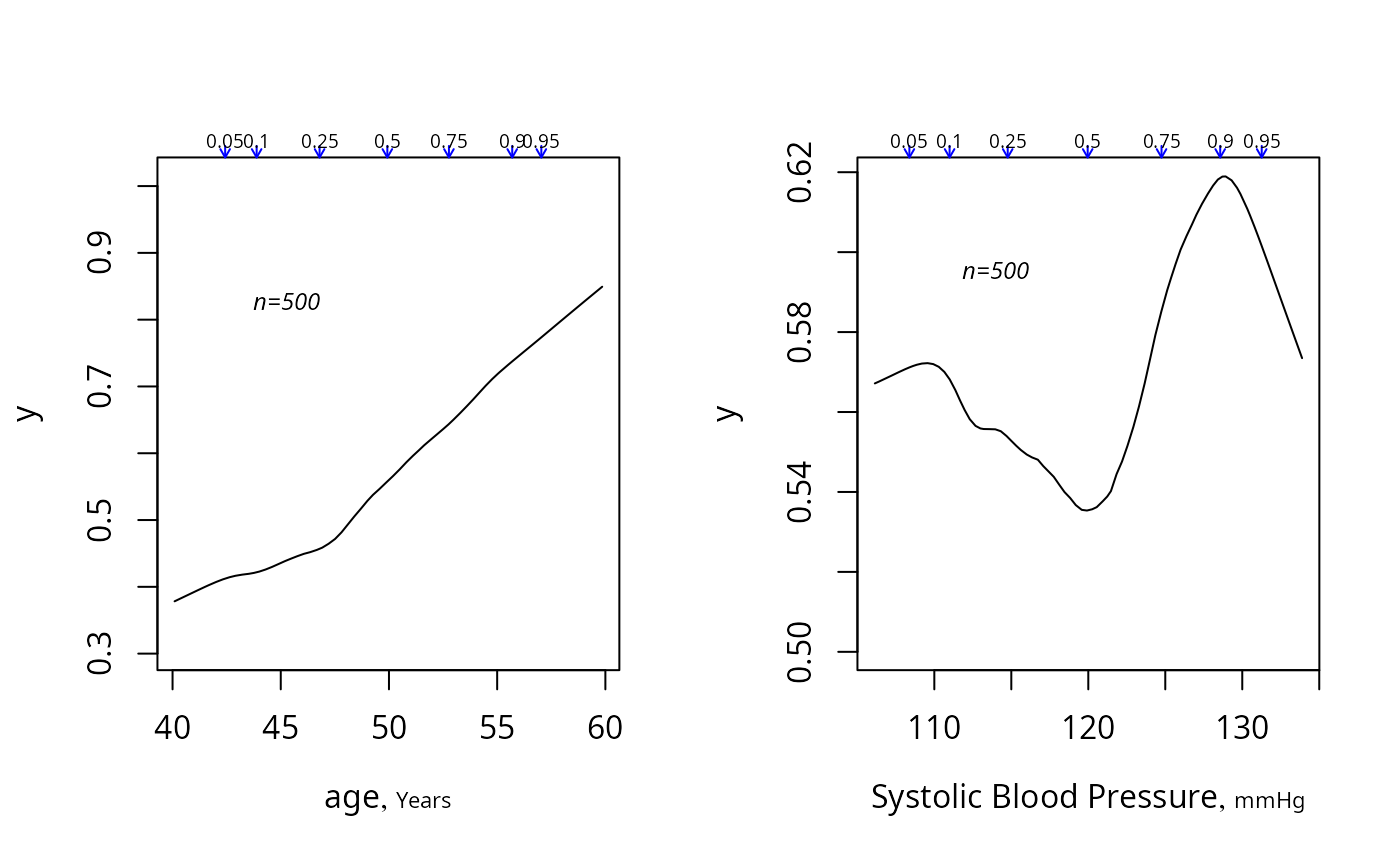 summaryRc(y ~ age + bp, bpplot='top', datadensity=FALSE, trim=.01)