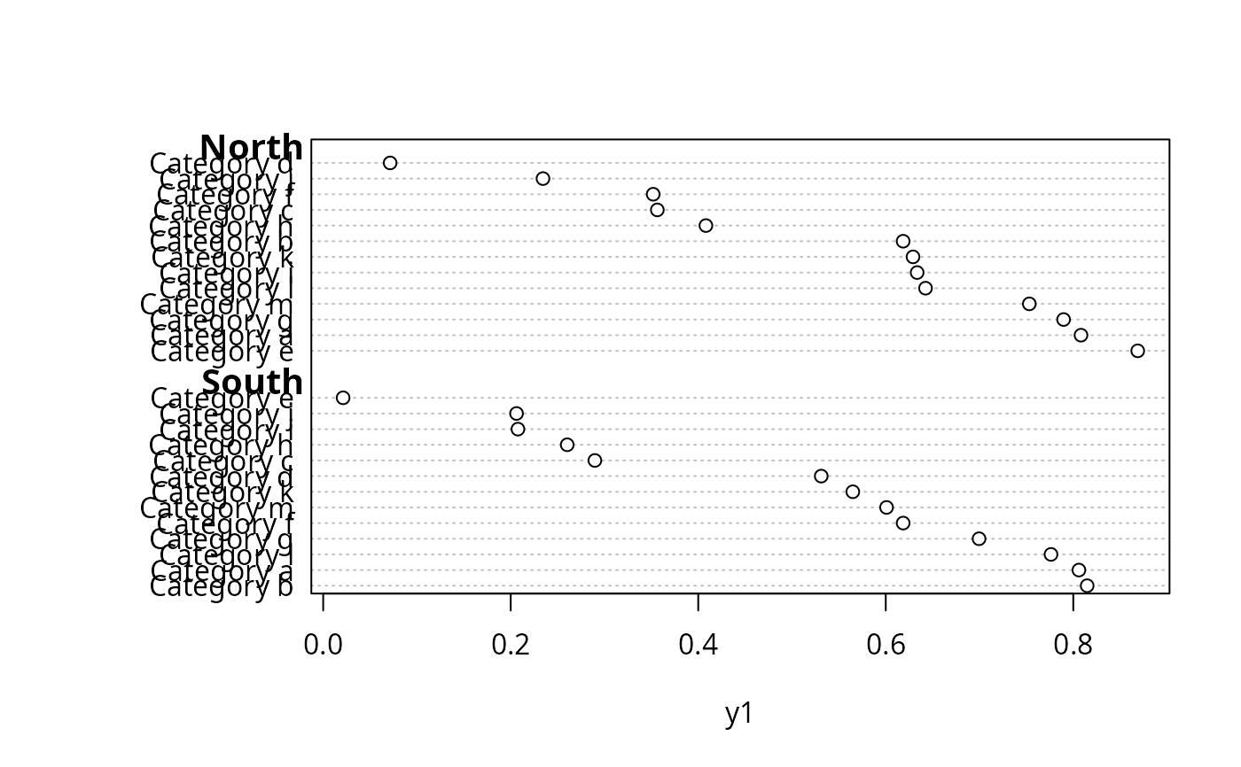 ## dotchart(y1, g, groups=maj, xlab='Y')