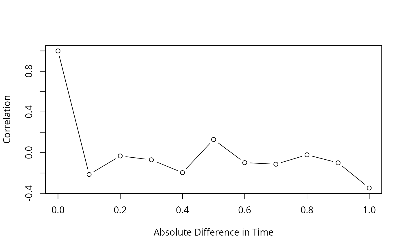 cor.pattern=function(time1,time2) 0.2^(abs(time1-time2)/10)would specify a dampening serial correlation pattern.cor.patterncan also be a list containing vectorsx(a vector of absolute time differences) andy(a corresponding vector of correlations). To estimate the correlation function as a function of absolute time differences within subjects, specifycor.pattern="estimate". The products of all possible pairs of residuals (or at least up toncorof them) within subjects will be related to the absolute time difference. The correlation function is estimated by computing the sample mean of the products of standardized residuals, stratified by absolute time difference. The correlation for a zero time difference is set to 1 regardless of thelowessestimate. NOTE: This approach fails in the presence of large subject effects; correcting for such effects removes too much of the correlation structure in the residuals.- ncor