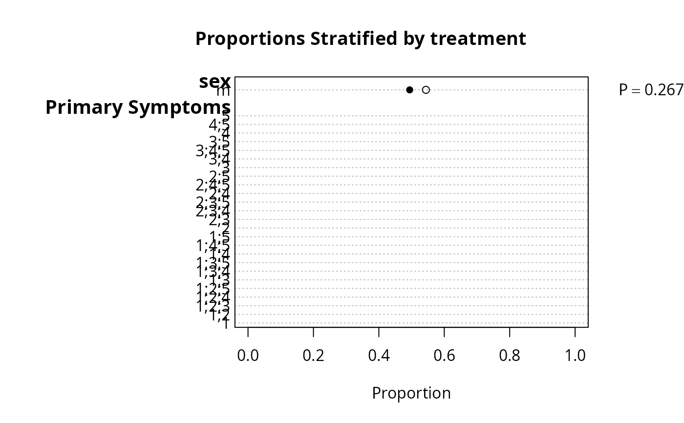 #> |sex : m |253| 0.47 (64) | 0.53 (61) |Chi-square=0.87 d.f.=1 P=0.352|