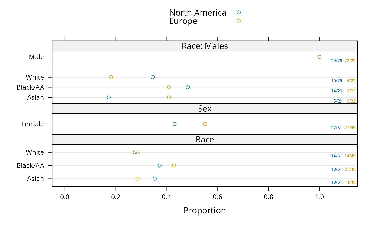 marginVal. For example, if marginal proportions were computed over allregions, one may specifymarginVal="All", marginLabel="All Regions".marginLabelis only used for formatting graphical output.- refgroup