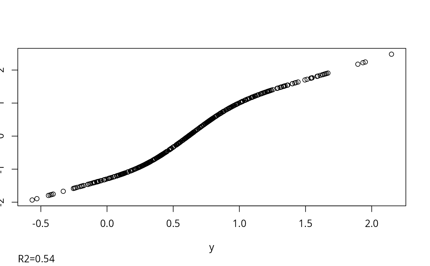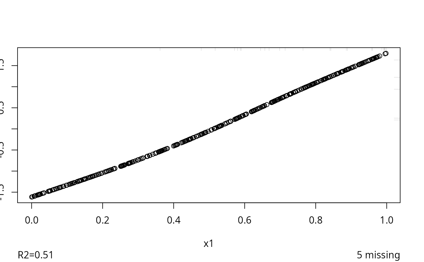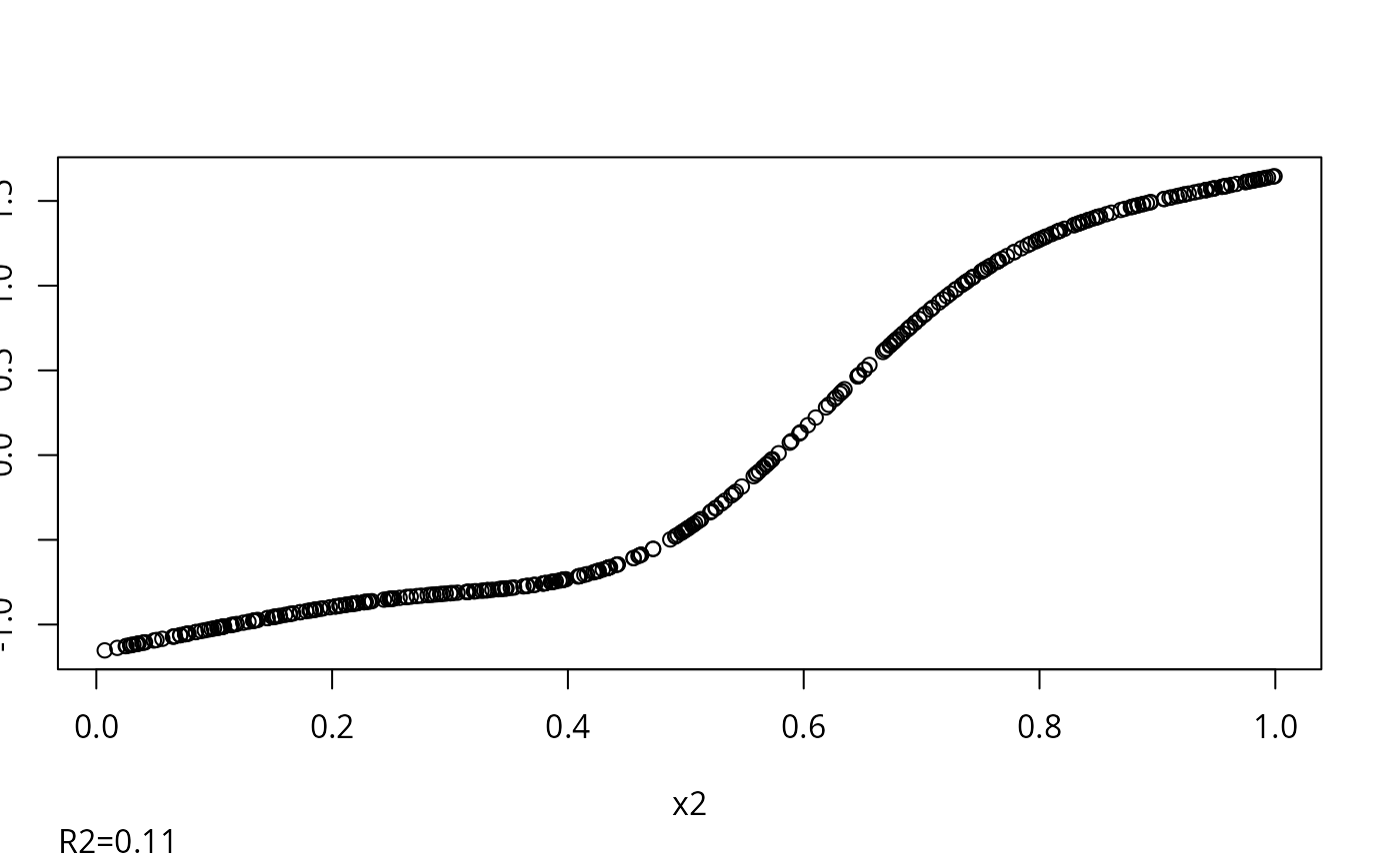 y <- x1*x2 + x1/(1+x2) + rnorm(n)/3