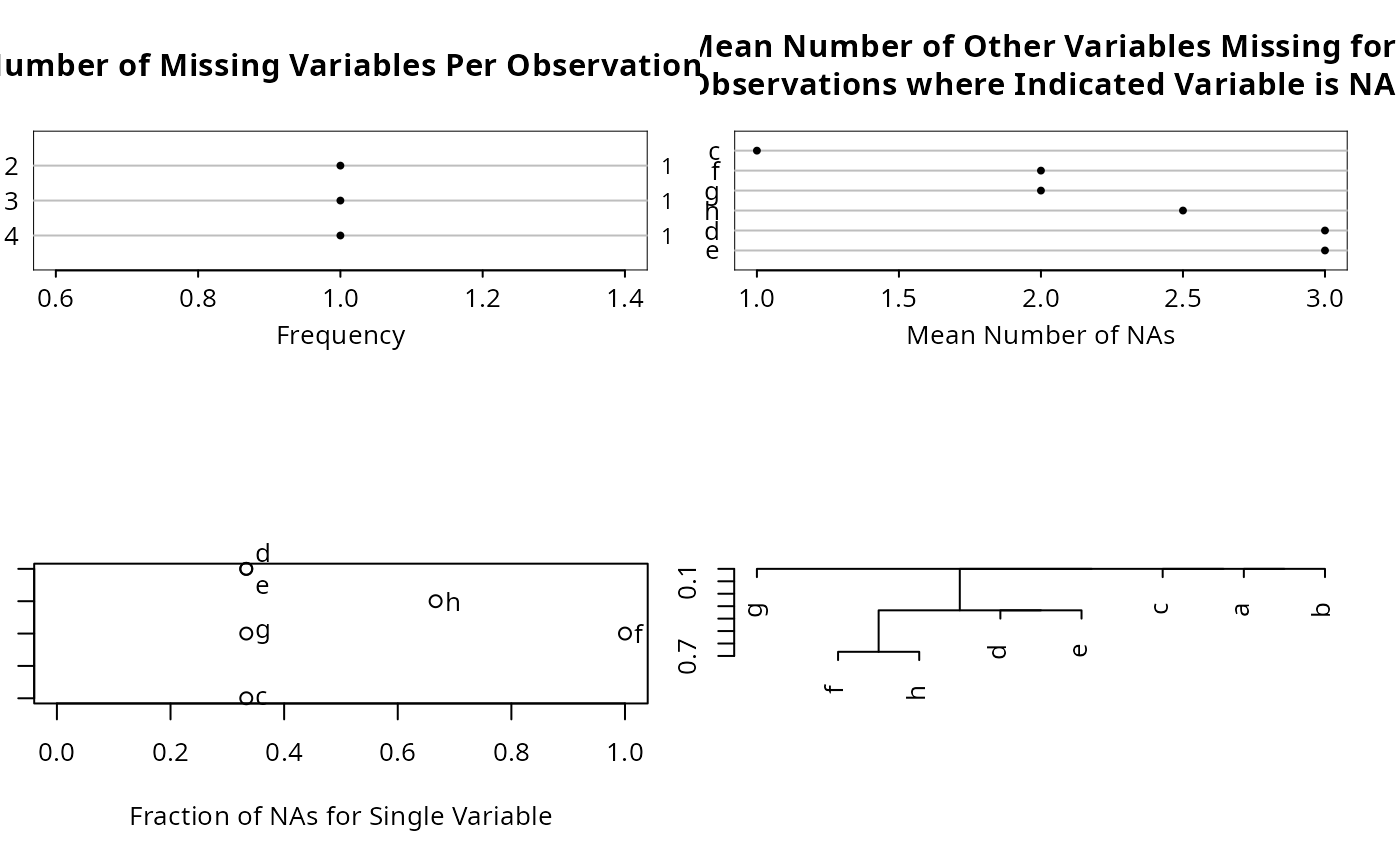 naplot(obj, which=c('all','na per var','na per obs','mean na',