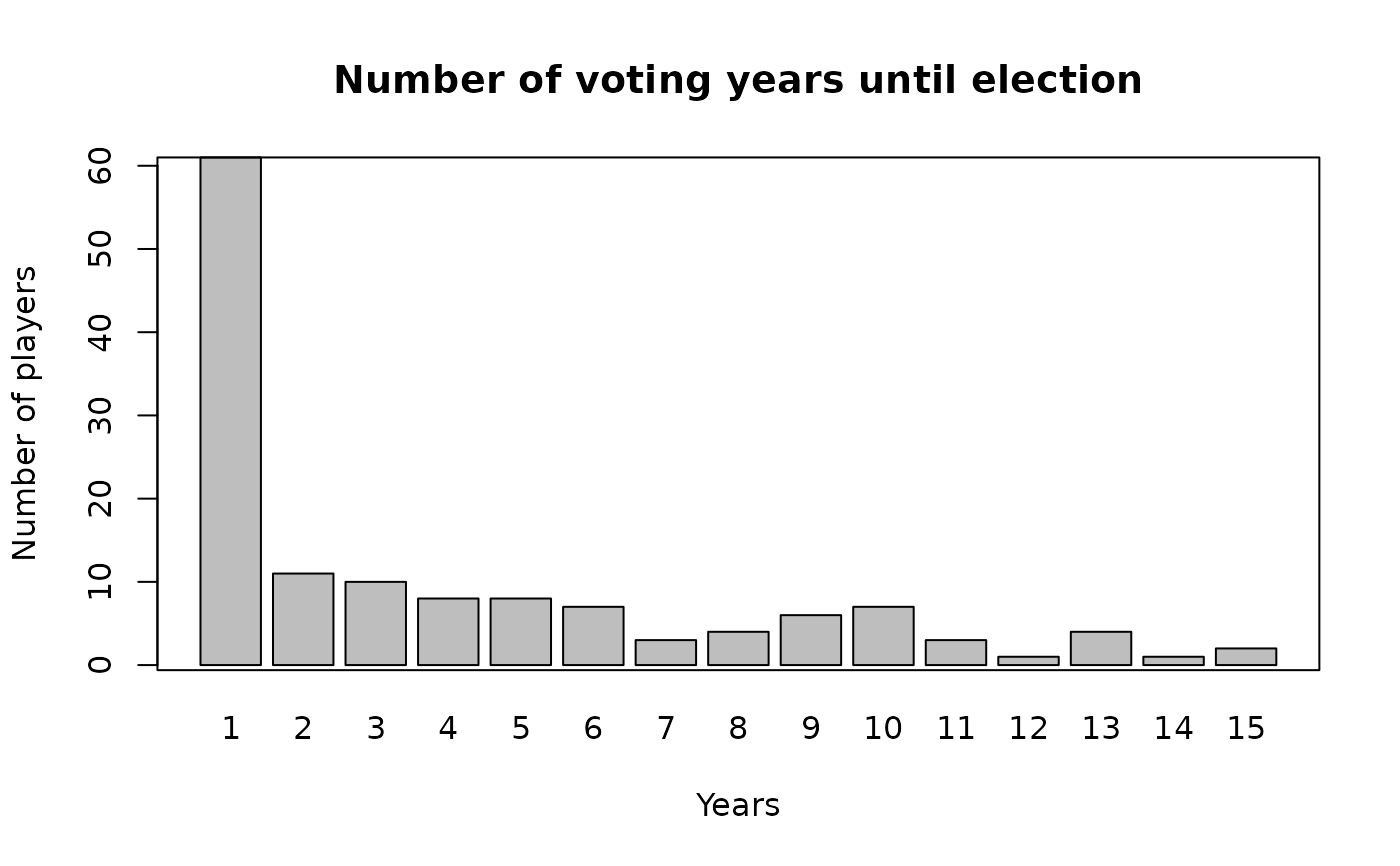#> playerID nyears inducted lastPct lastYear