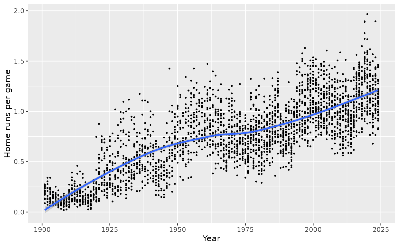 ggplot(teams, aes_string(x = "yearID", y = yvar)) +