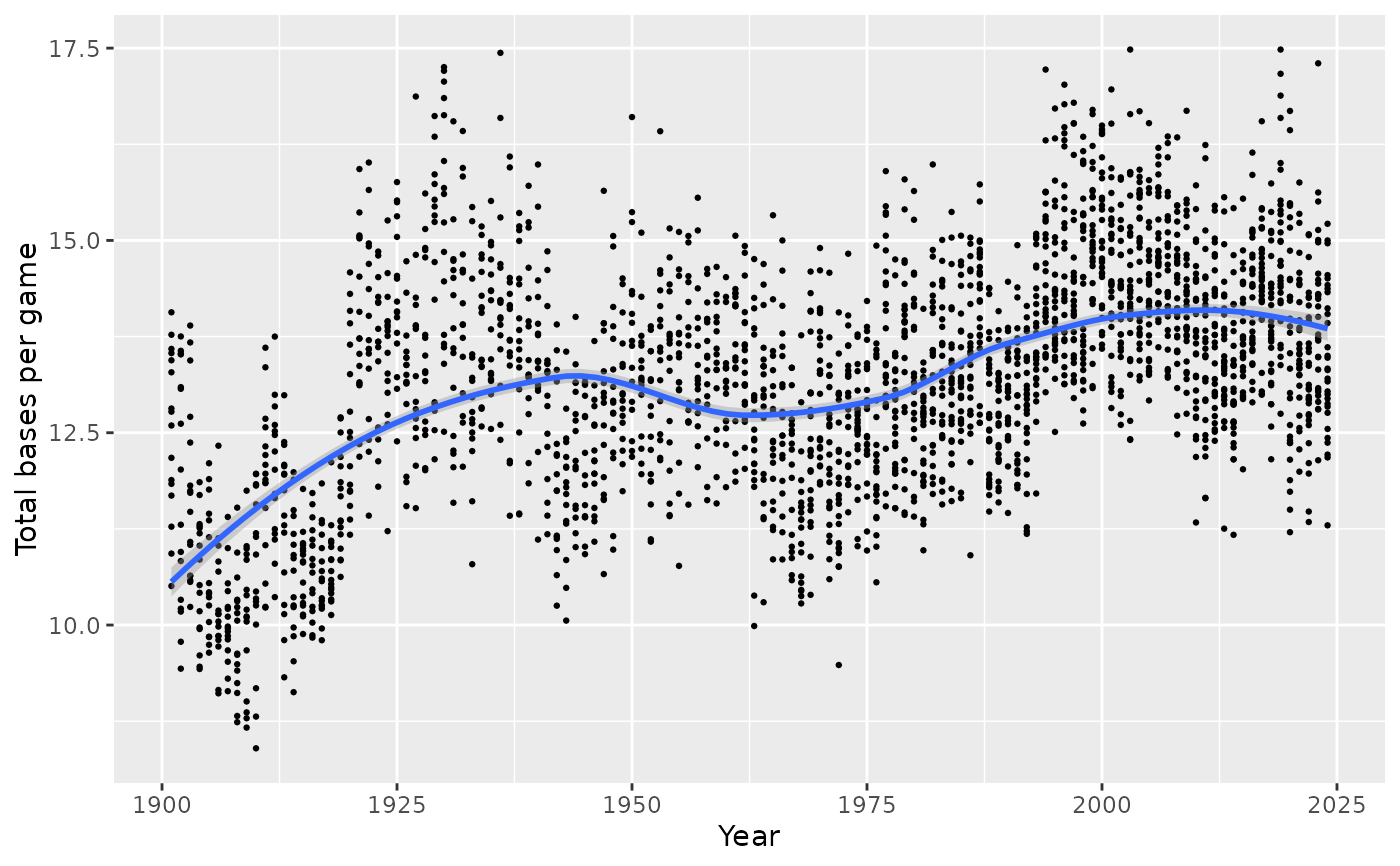 ## Total bases per game by year