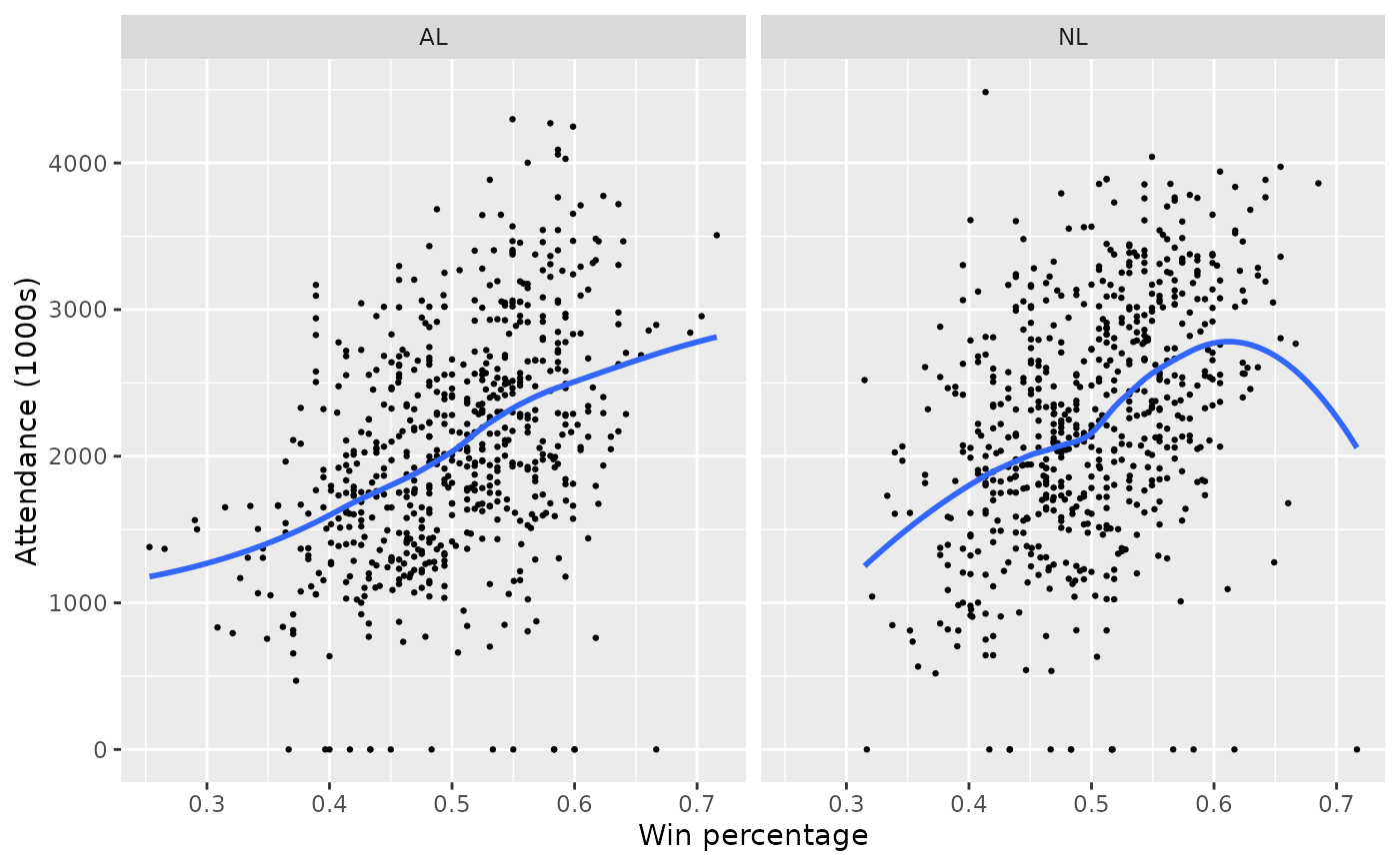 labs(x = "Win percentage", y = "Attendance (1000s)")