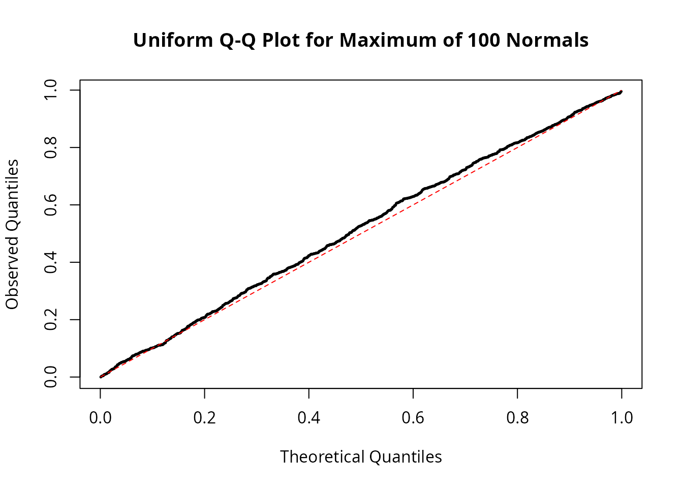 main = "Uniform Q-Q Plot for Maximum of 100 Normals",