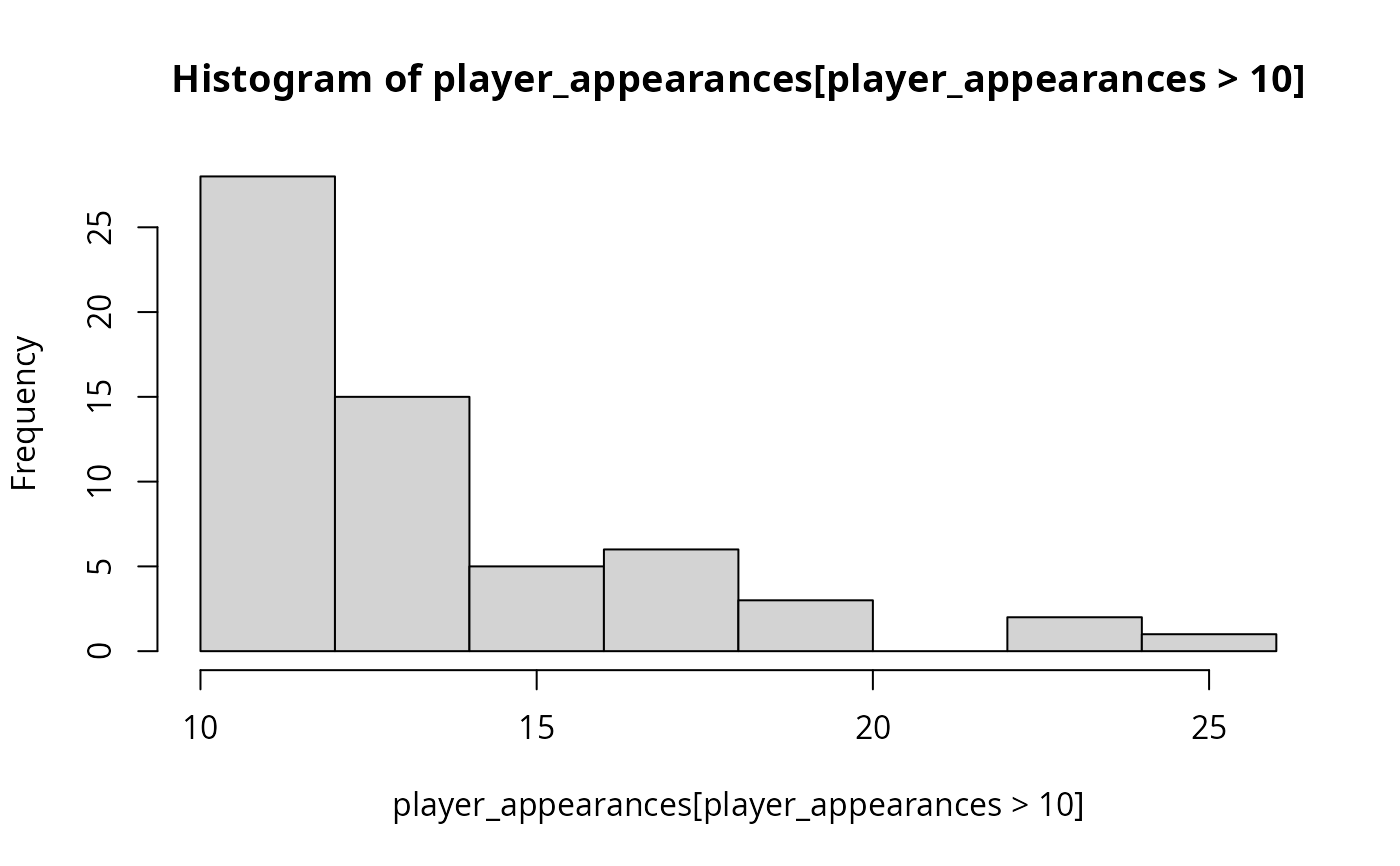player_appearances <- with(AllstarFull, rev(sort(table(playerID))))
