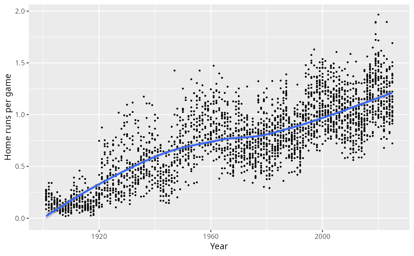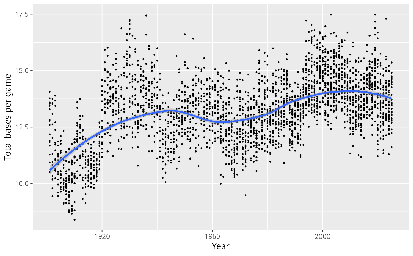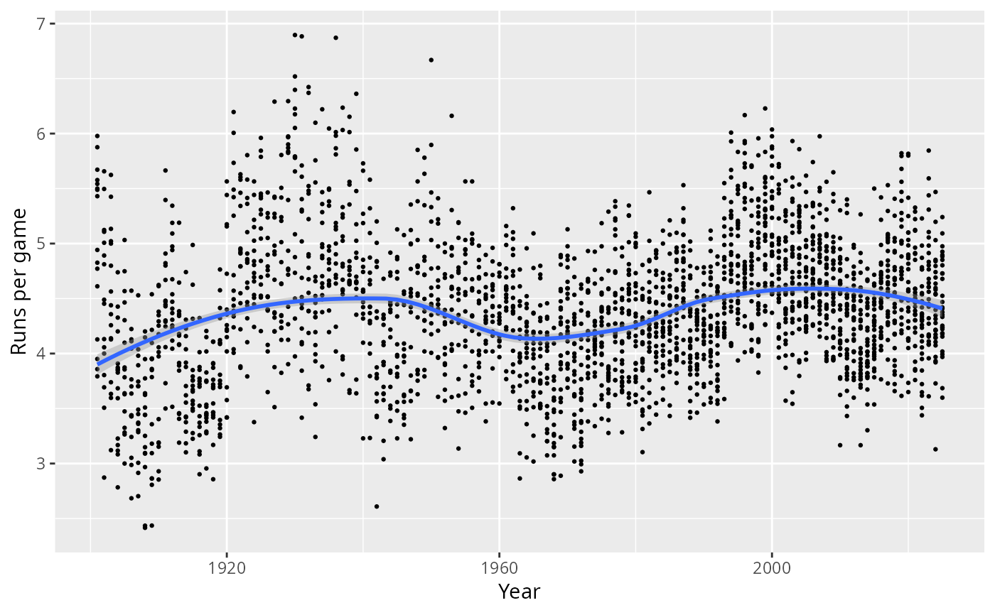 ggplot(teams, aes_string(x = "yearID", y = yvar)) +