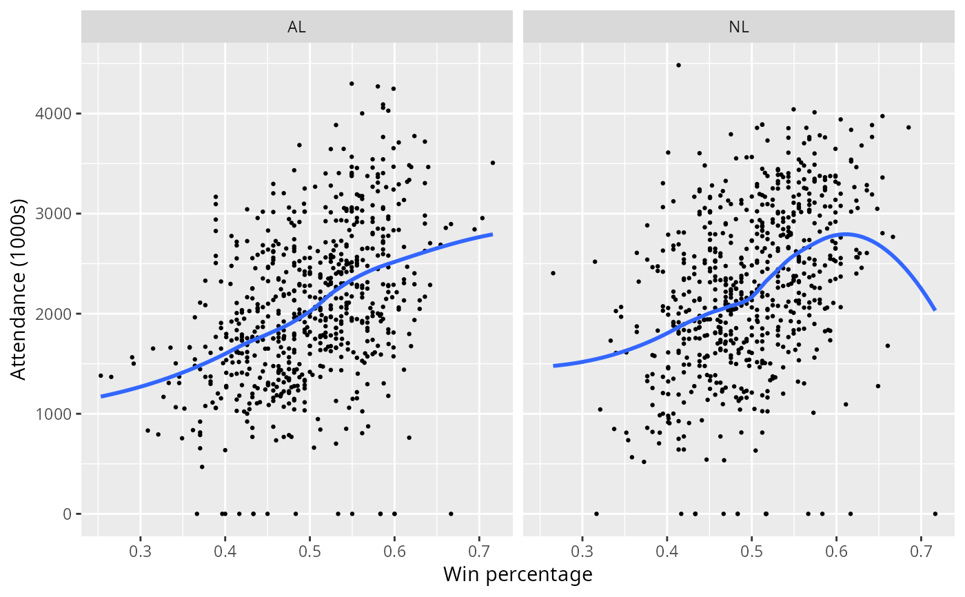 labs(x = "Win percentage", y = "Attendance (1000s)")