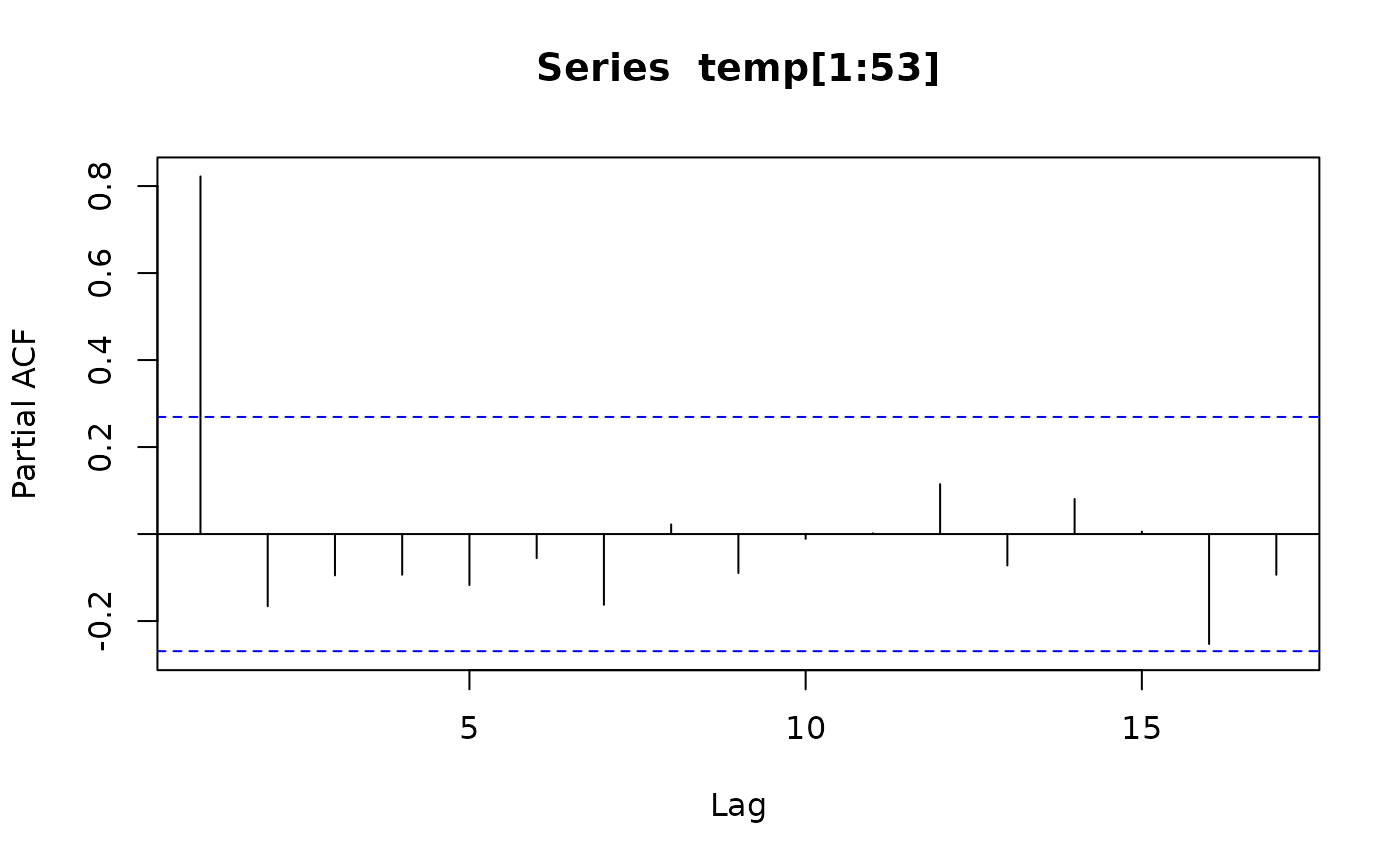 acf(temp[1:53], type = "partial")
