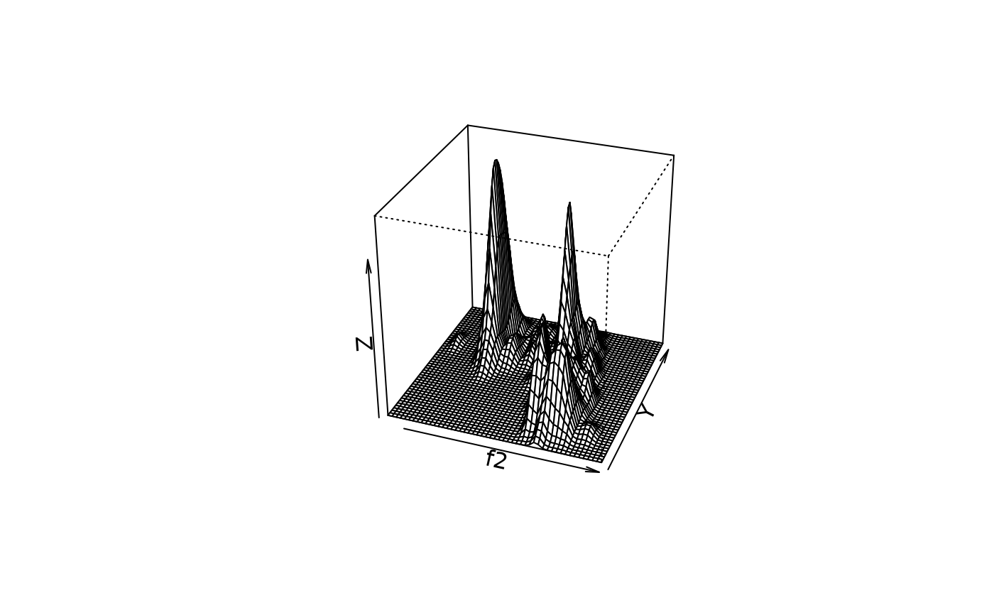 f1 <- kde2d(duration, waiting, n = 50, lims = c(0.5, 6, 40, 100))