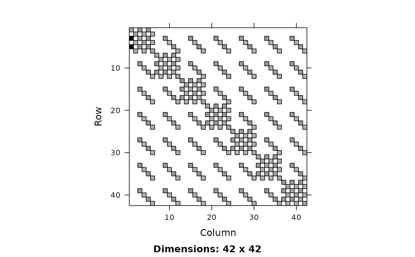 image(a <- 2*Diagonal(n) + ZZ %*% Diagonal(x=c(10, rep(1, n-1))))