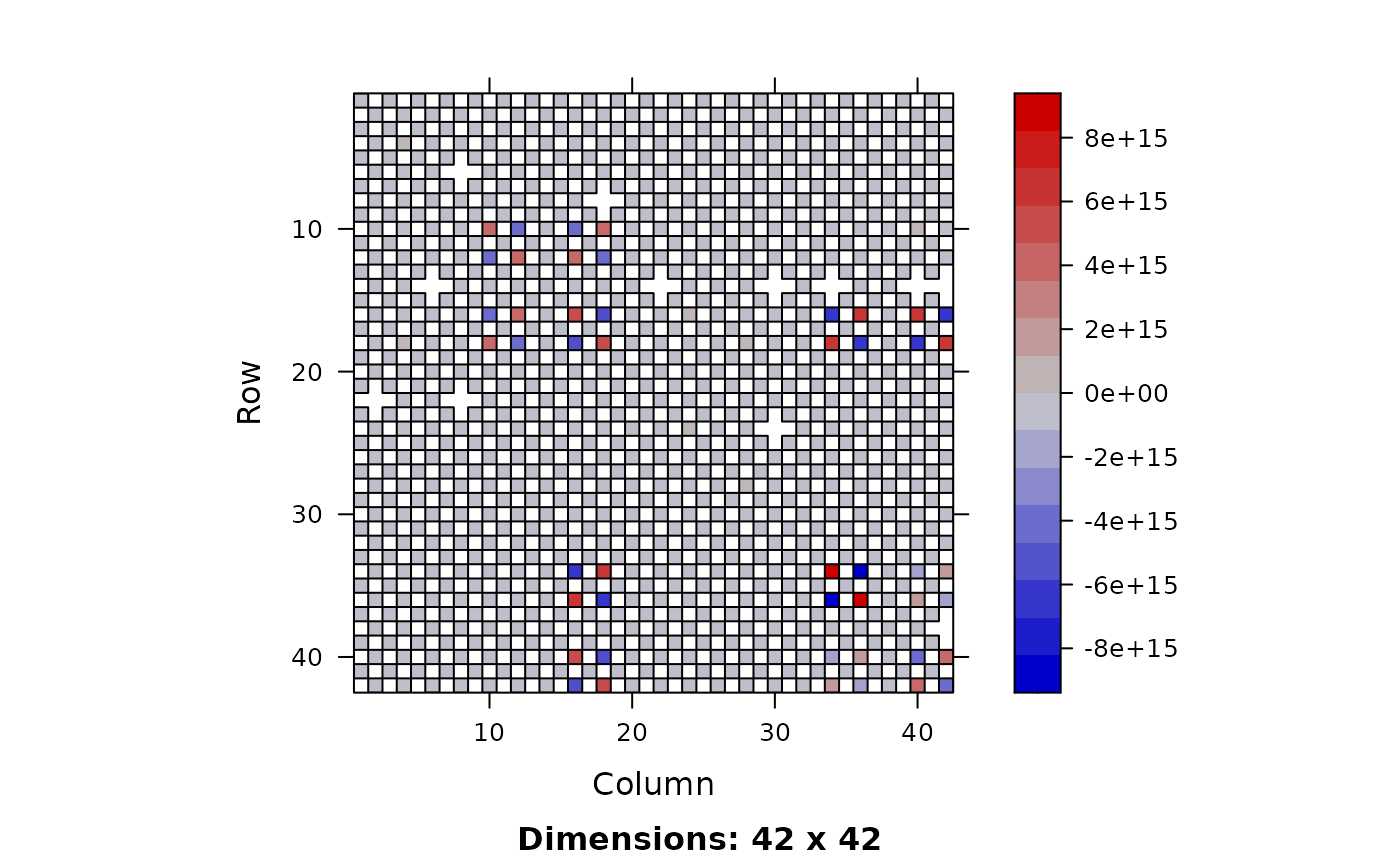 image(ia0 <- solve(a, tol = 0)) # checker board, dense [but really, a is singular!]