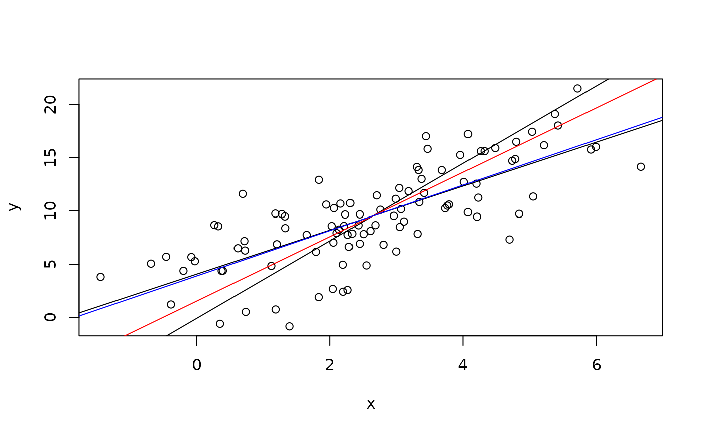 abline(Deming(x,y,sdr=10)[1:2],col="blue")