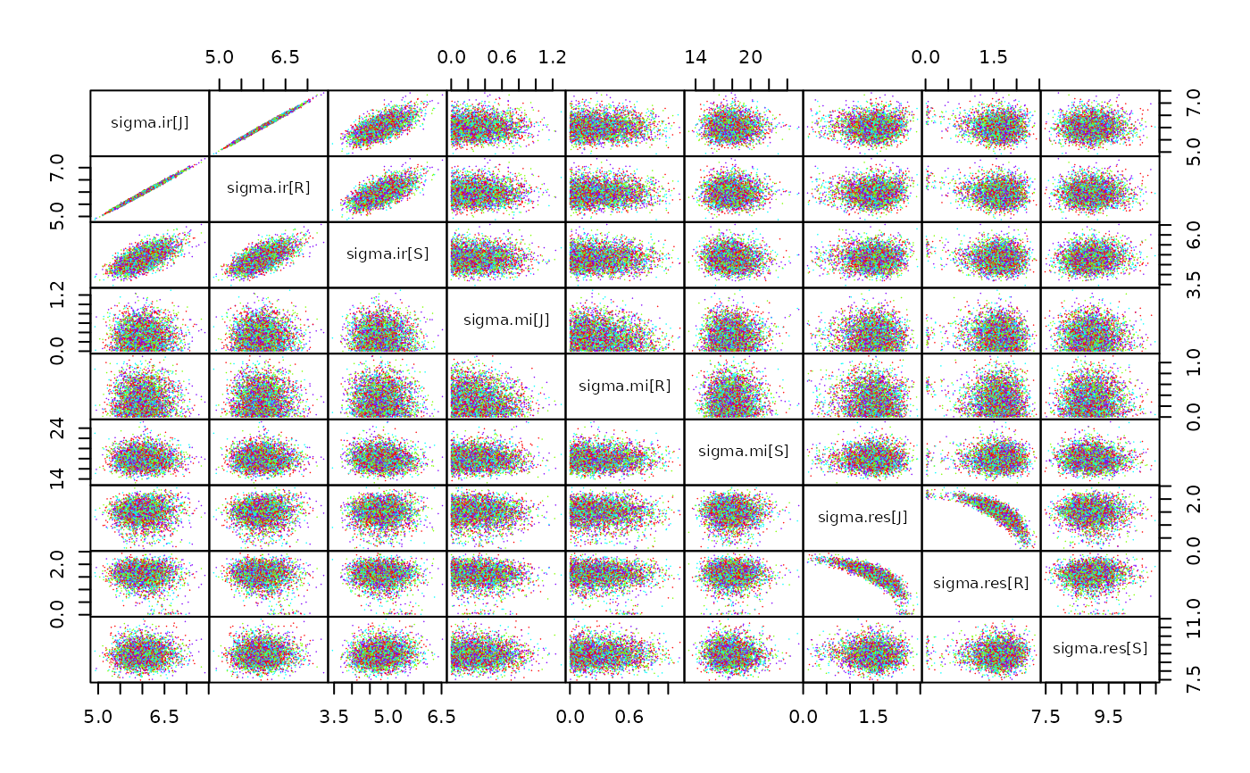 # Have a look at the correlation between the 9 variance parameters