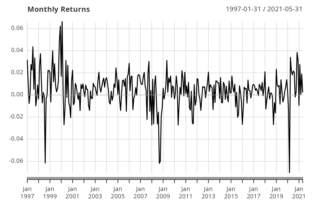 A wrapper to create a chart of periodic returns in a bar chart. This is a difficult enough graph to read that it doesn't get much use. Still, it is useful for viewing a single set of data.