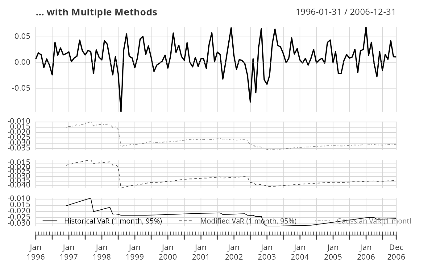 methods=c("HistoricalVaR", "ModifiedVaR", "GaussianVaR"),
