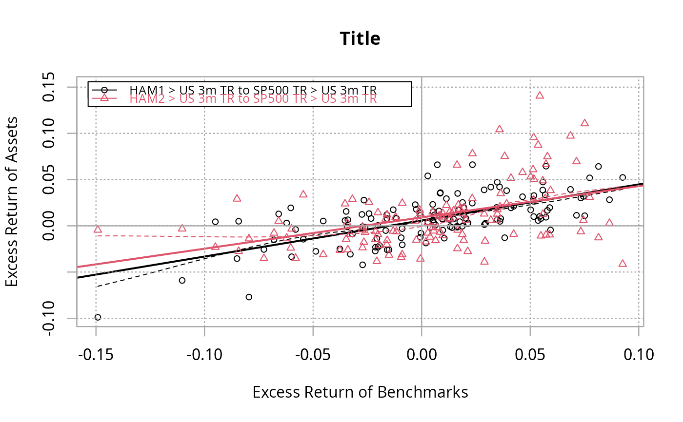 for values of "loess", "linear", or "conditional", plots a line to fit the data. Conditional lines are drawn separately for positive and negative benchmark returns. "Quadratic" is not yet implemented.