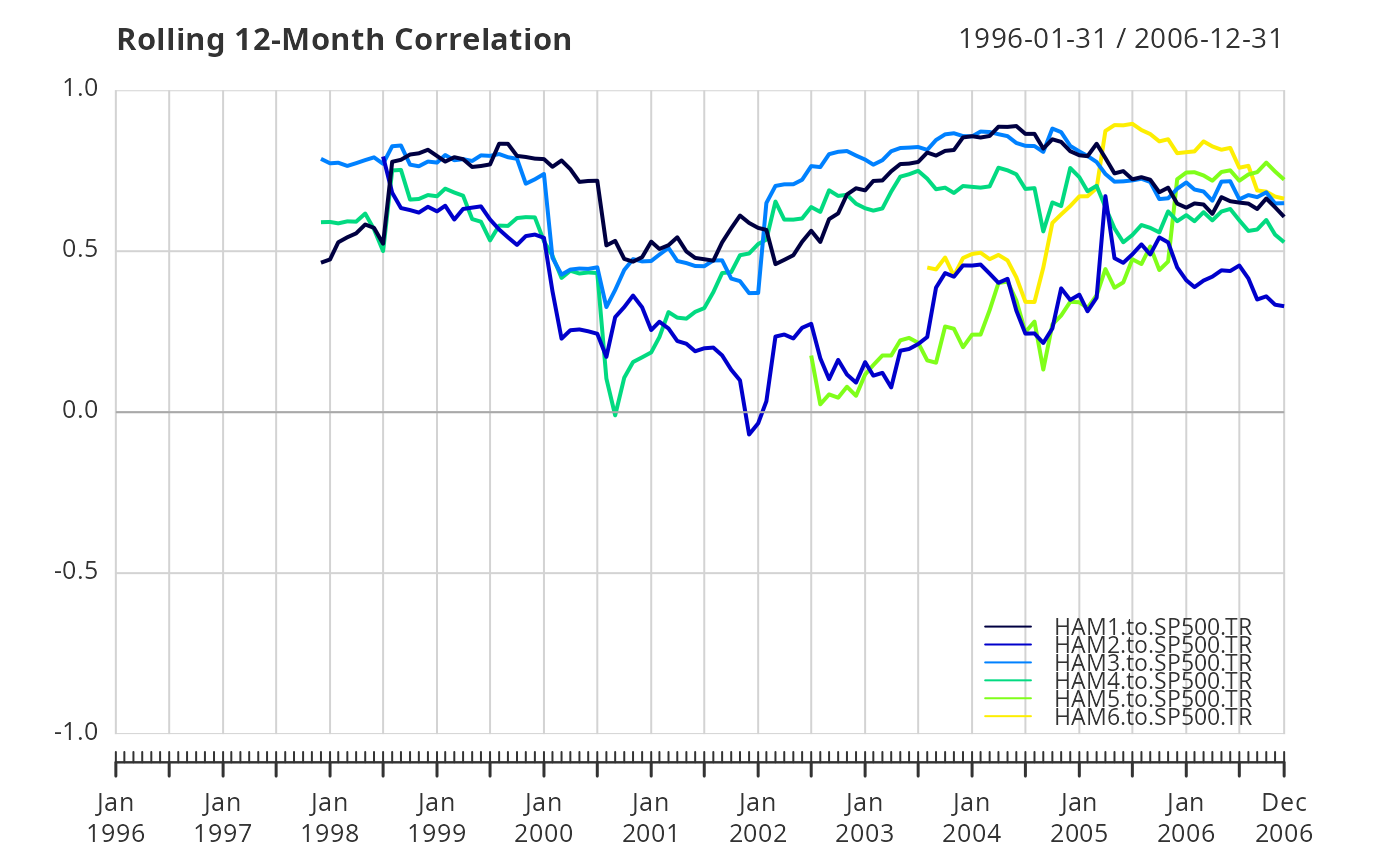 chart.RollingCorrelation(managers[, 1:6, drop=FALSE],