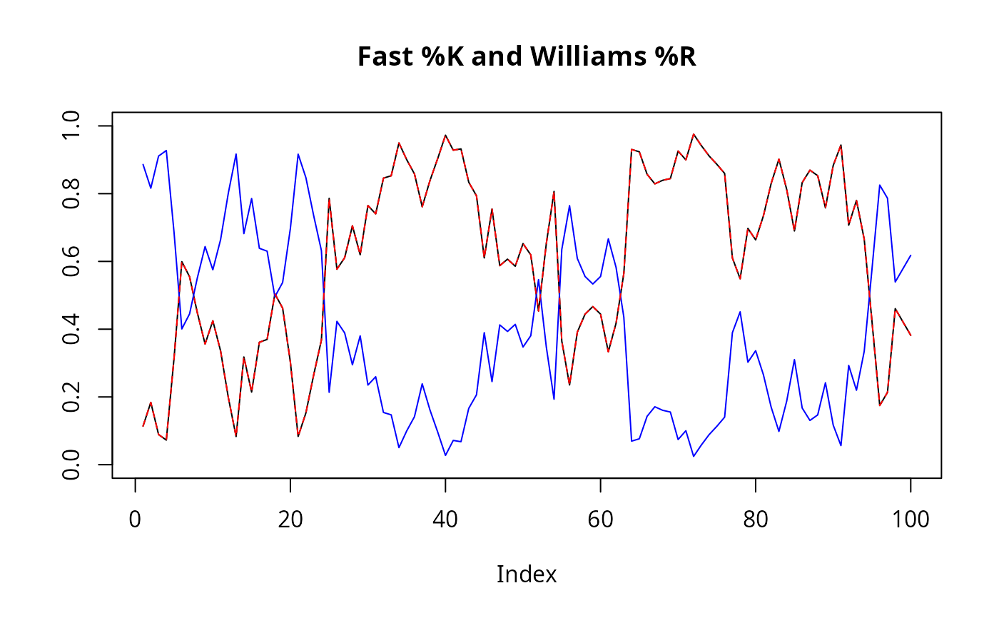 main="Fast %K and Williams %R", ylab="",