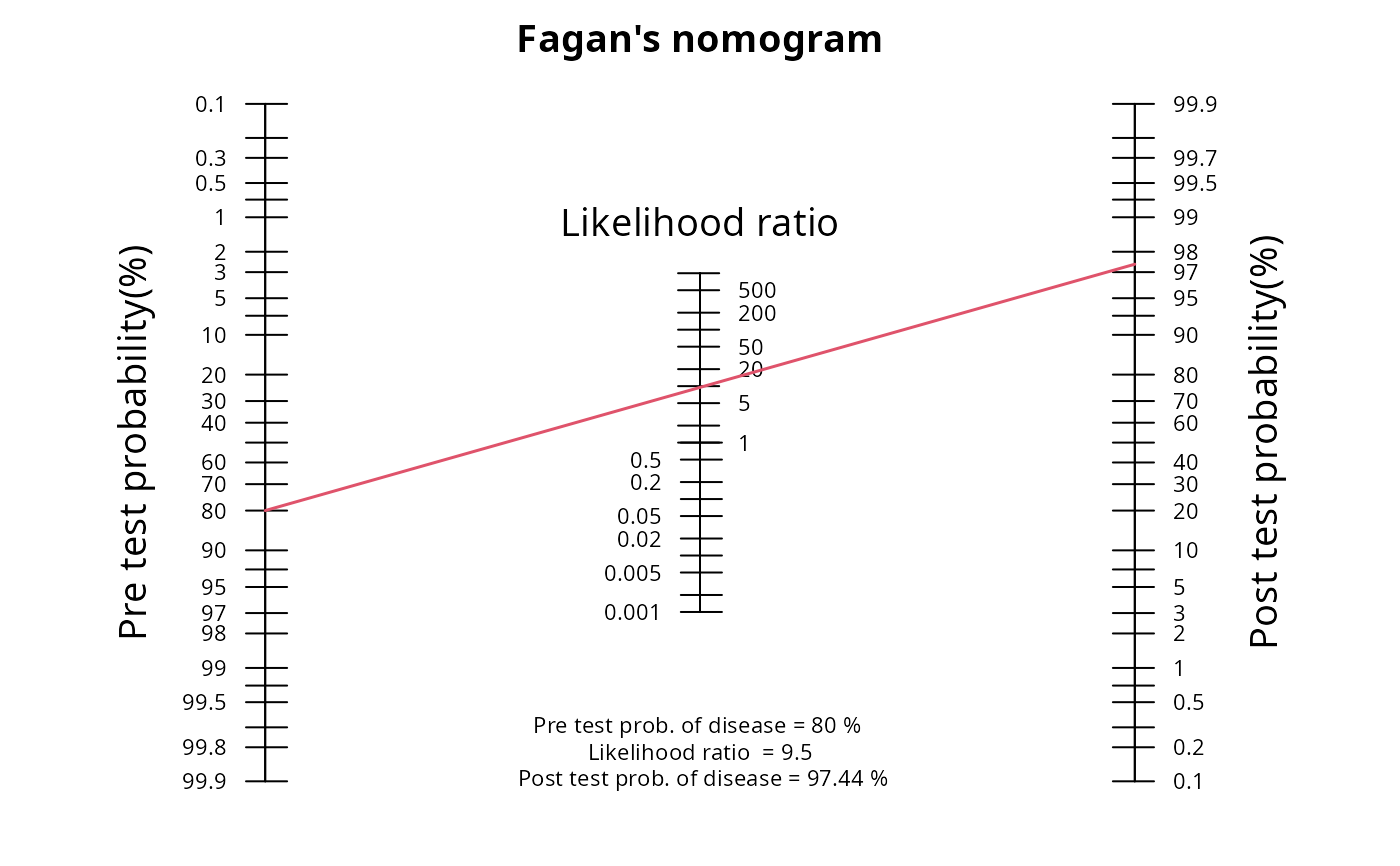 Fagan TJ. Nomogram for Bayes theorem. N Engl J Med 1975;293(5):257-61. https://ebm.bmj.com/content/6/6/164.full