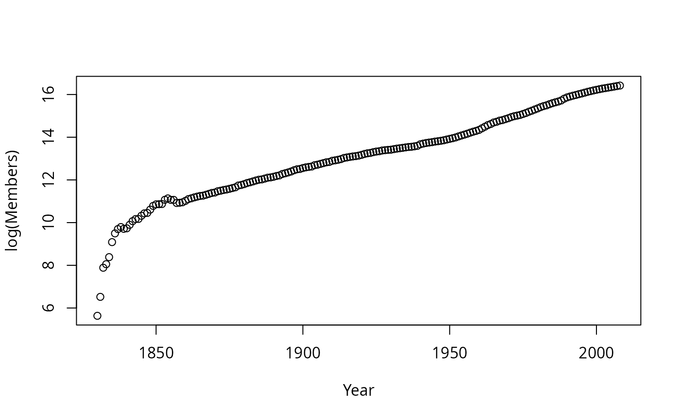 ldsgrowth.RdData on the Growth of The Church of Jesus Christ of Latter-day Saints (commonly known as the Mormon church (https://www.churchofjesuschrist.org/comeuntochrist)).