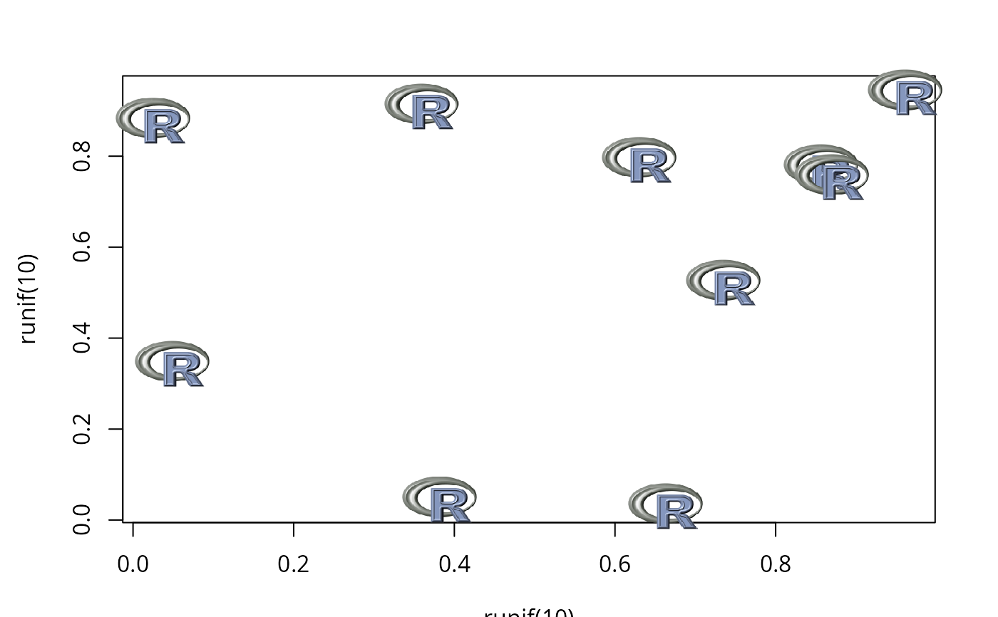 my.symbols( runif(10), runif(10), ms.image, MoreArgs=list(img=img),