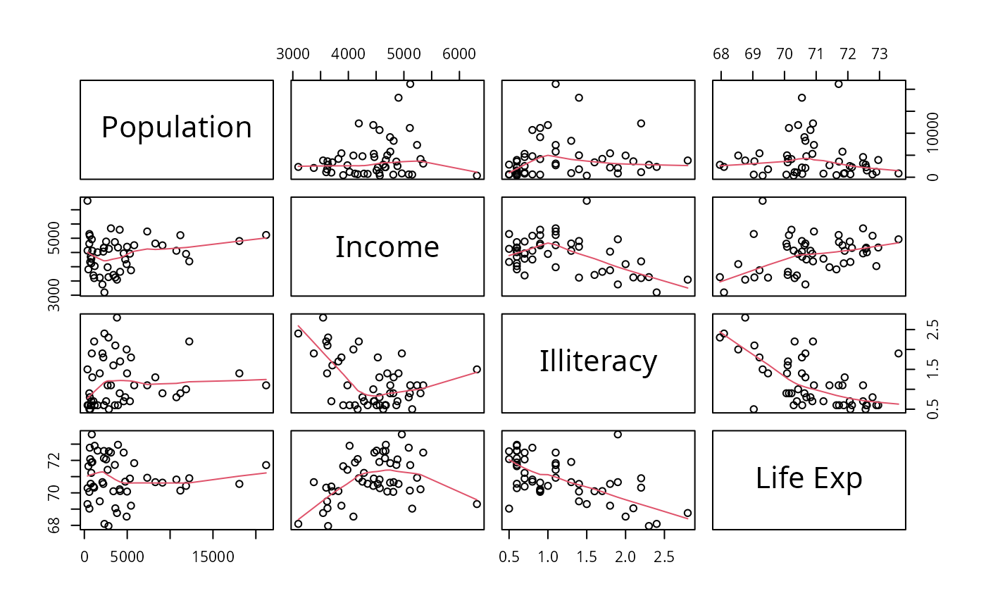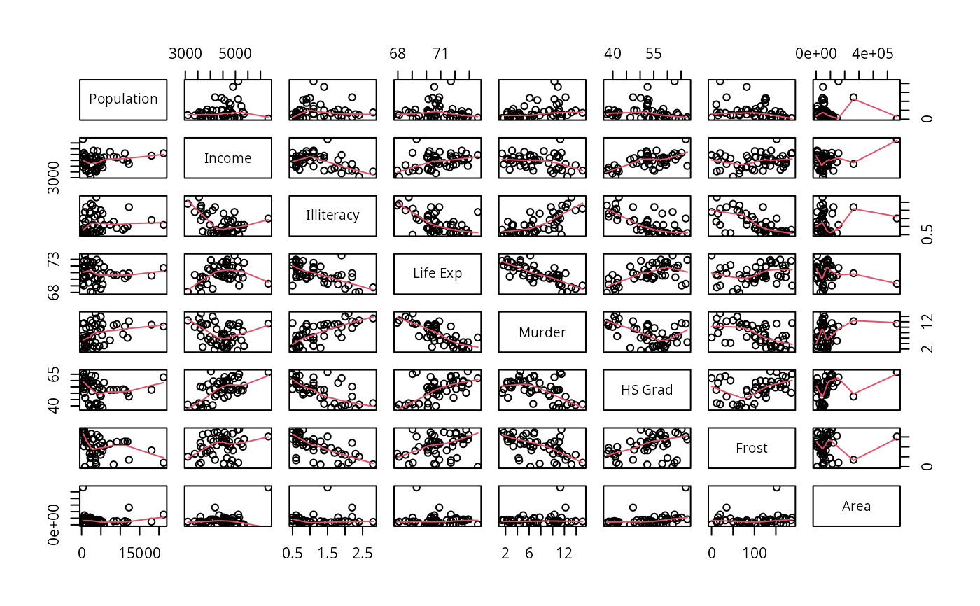 pairs(state.x77, panel=panel.smooth)