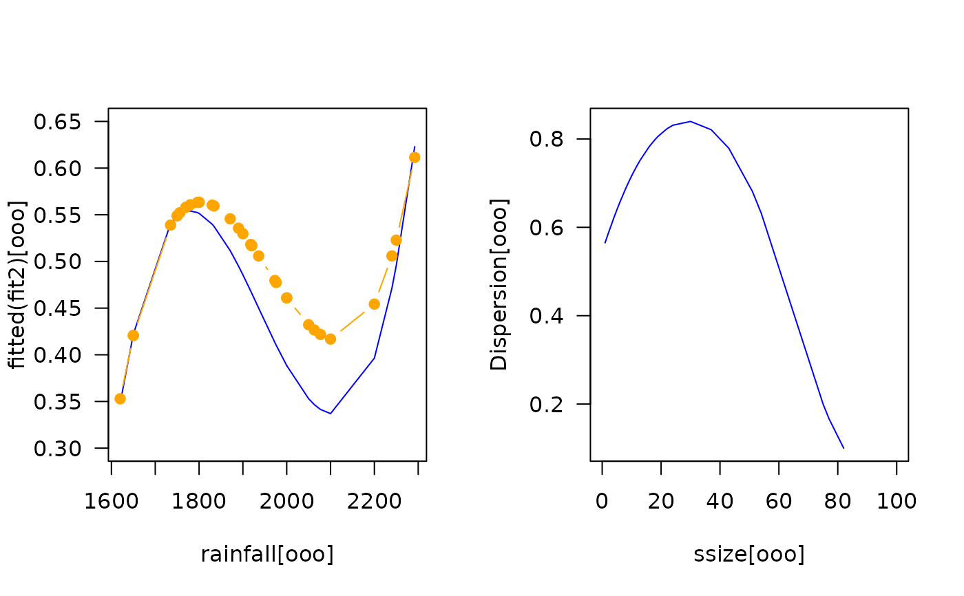 #> I(srainfall^2) + I(srainfall^3) + I(sN) + I(sN^2), family = double.expbinomial(ldisp = "extlogitlink(min = 0, max = 1.25)",