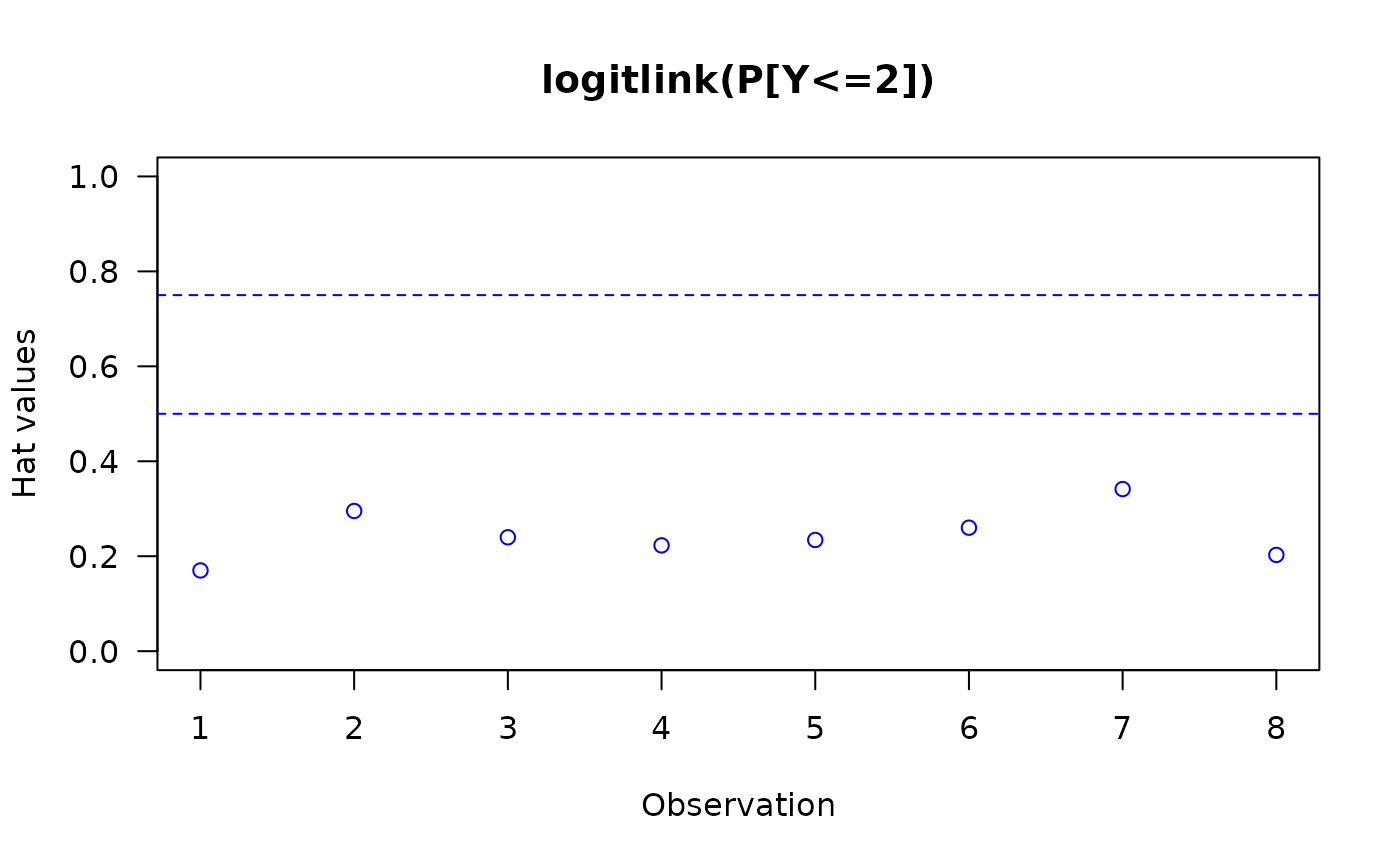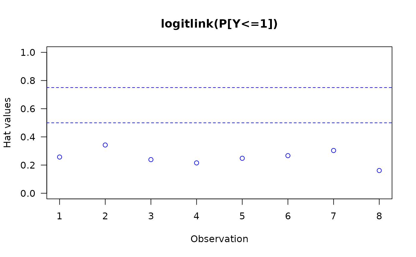 hatplot(fit, ylim = c(0, 1), las = 1, col = "blue") # \dontrun{}