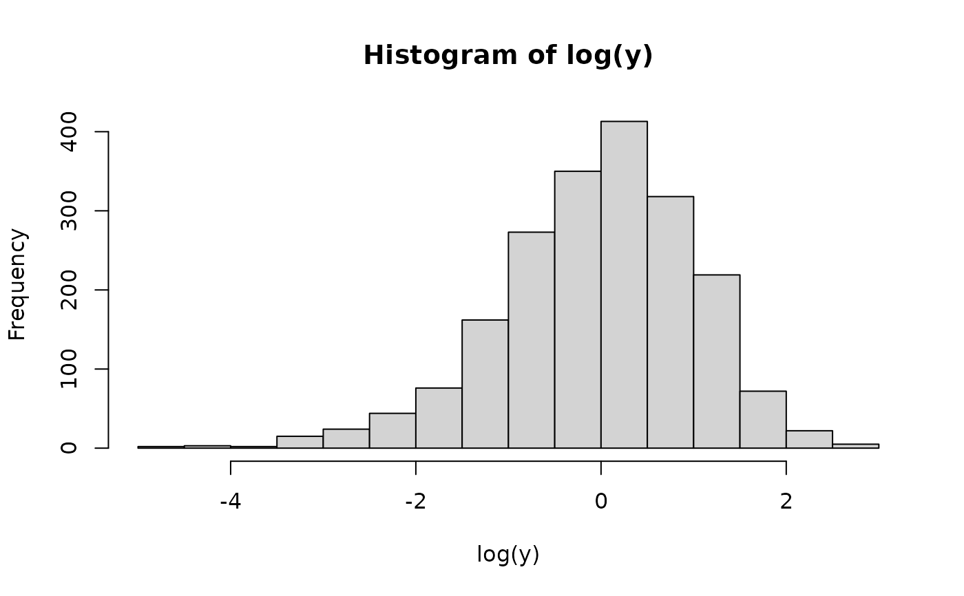 with(pdata, hist(y)); with(pdata, hist(log(y))) # \dontrun{}