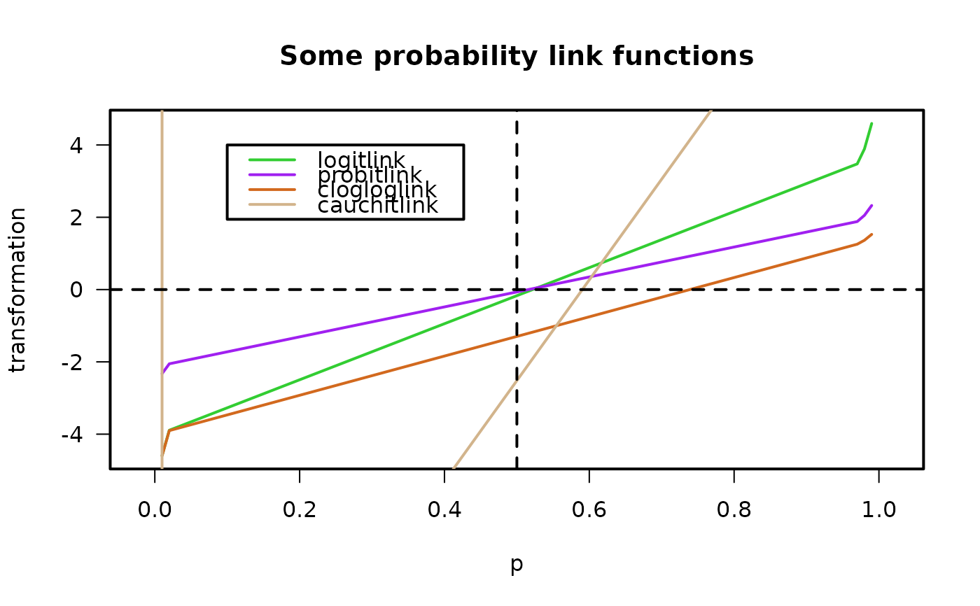 legend(0.1, 4, c("logitlink", "probitlink", "clogloglink", "cauchitlink"),
