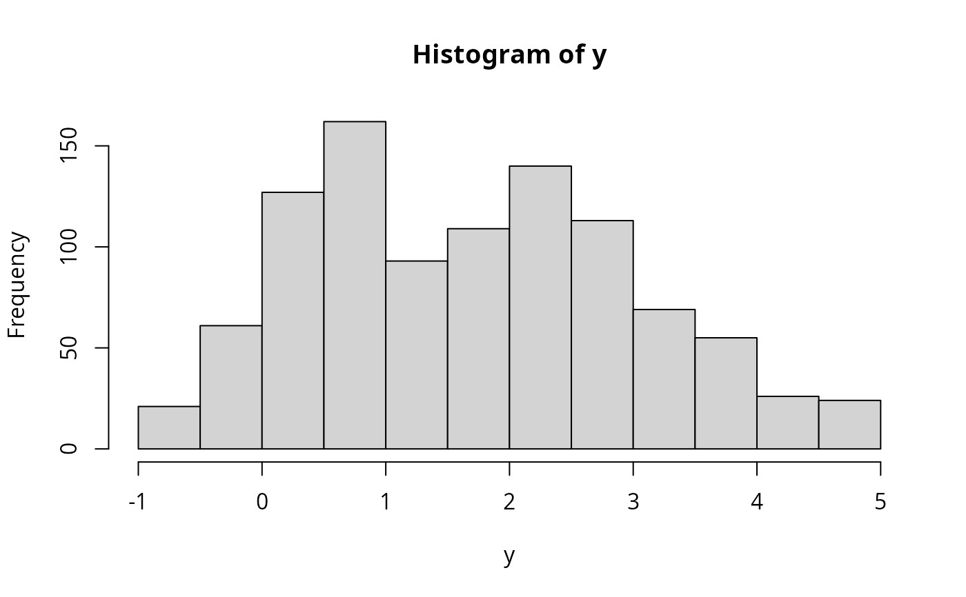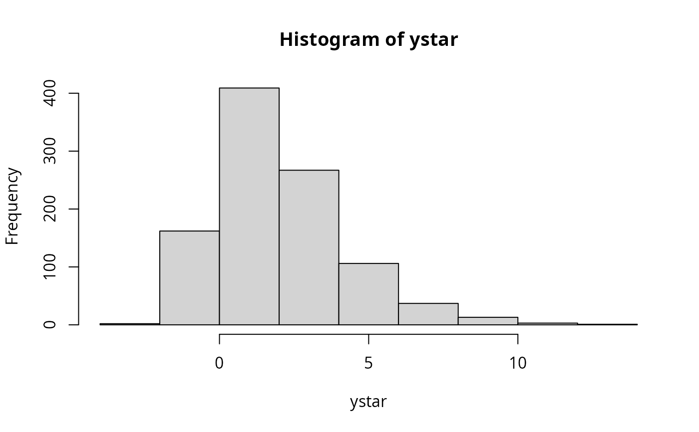if (FALSE) par(mfrow = c(1, 2)); hist(ystar); hist(y); # \dontrun{}