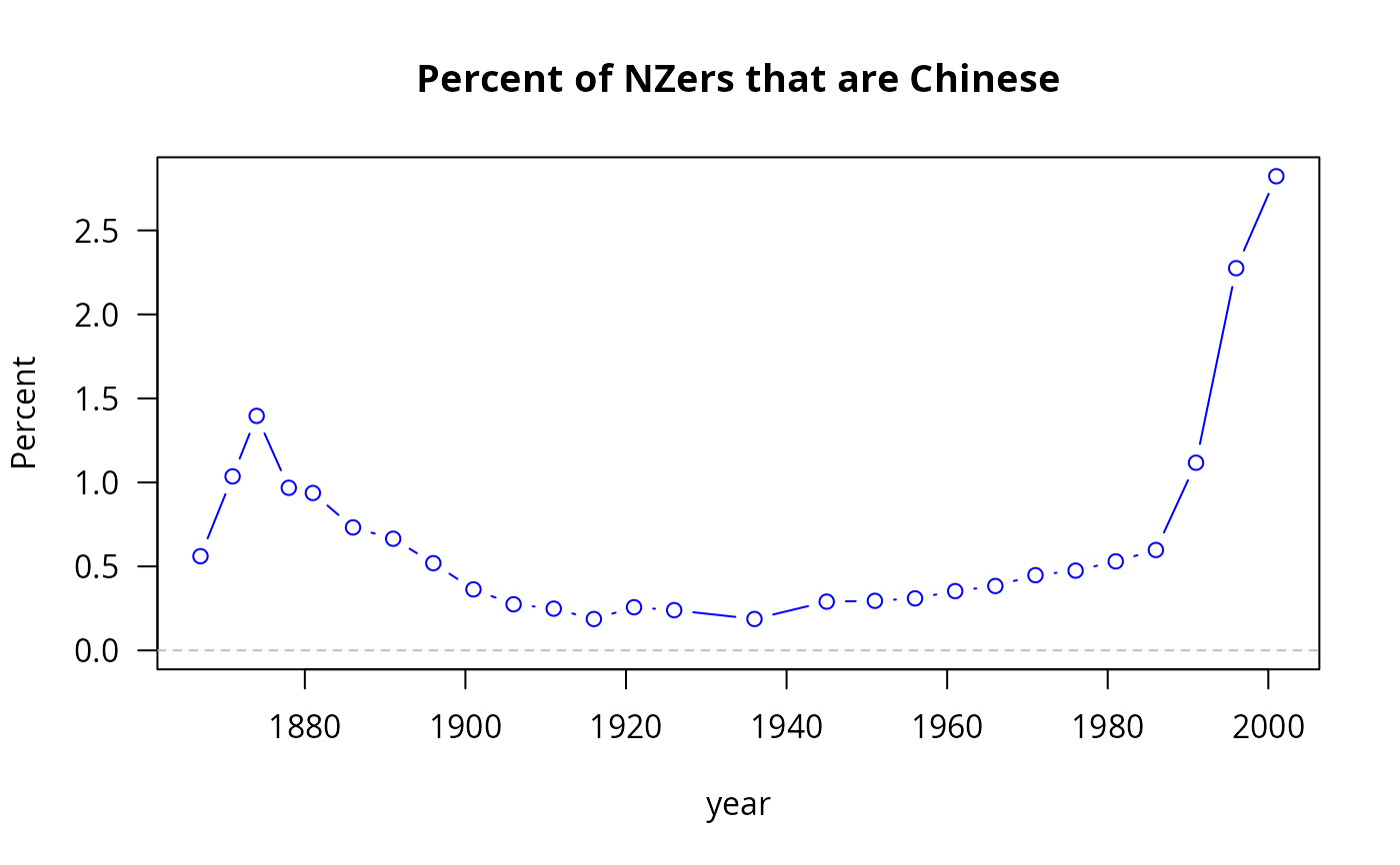 chinese.nz.RdThe Chinese population in New Zealand from 1867 to 2001, along with the whole of the New Zealand population.