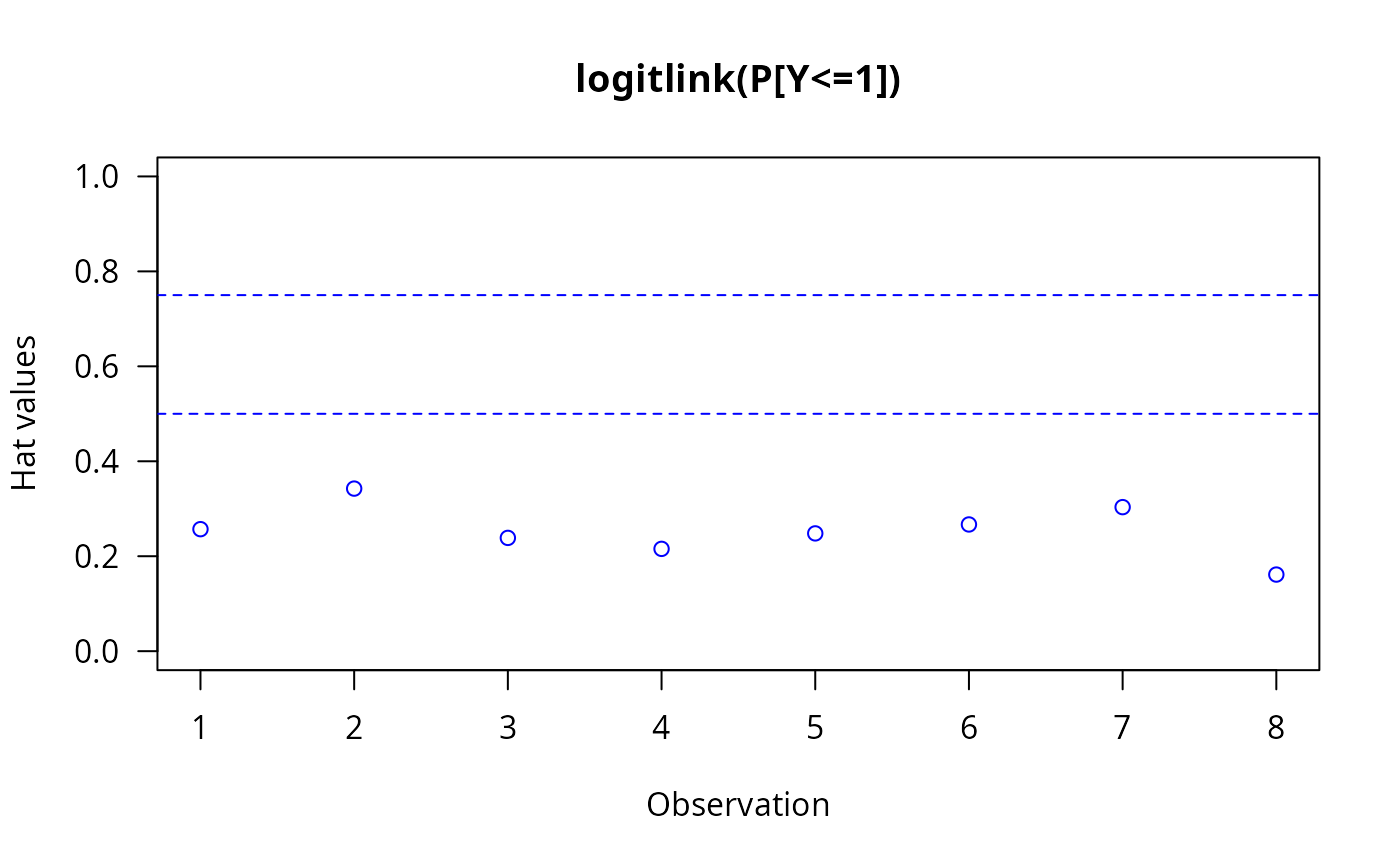 hatplot(fit, ylim = c(0, 1), las = 1, col = "blue") # \dontrun{}