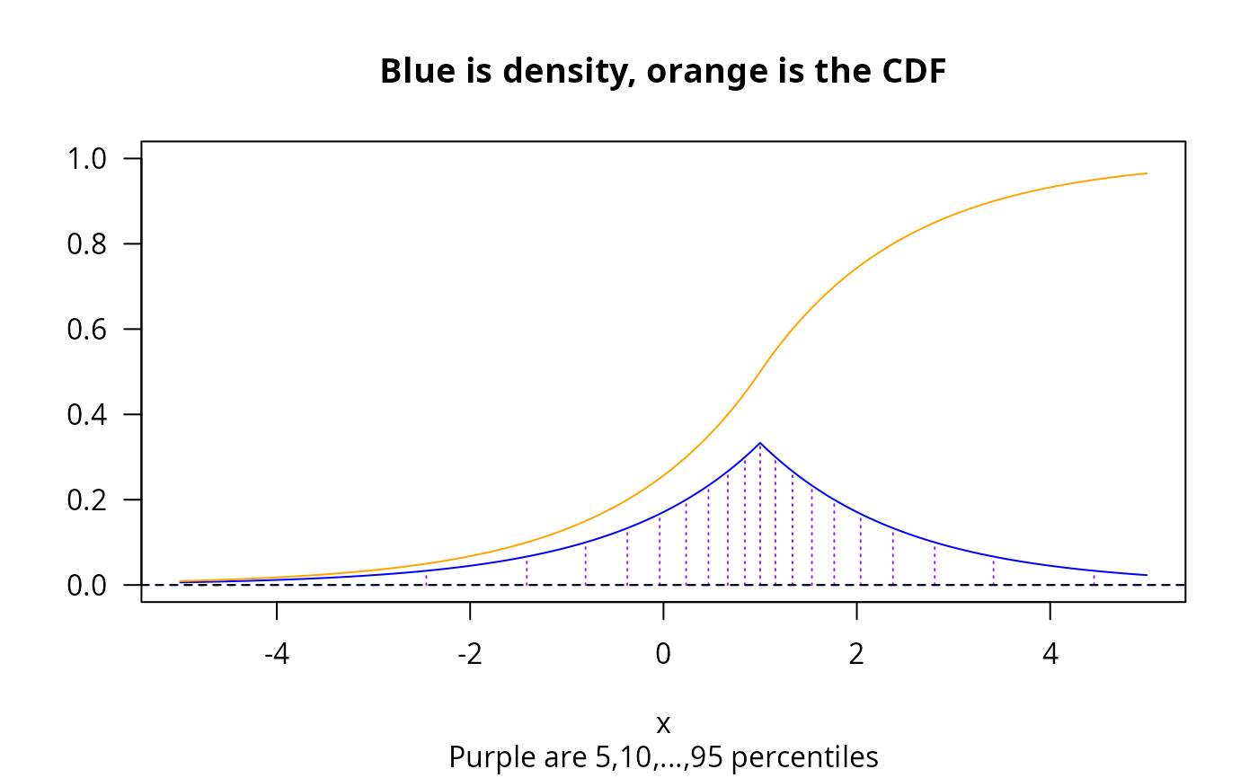 if (FALSE) loc <- 0; b <- 1.5; x <- seq(-5, 5, by = 0.01)
