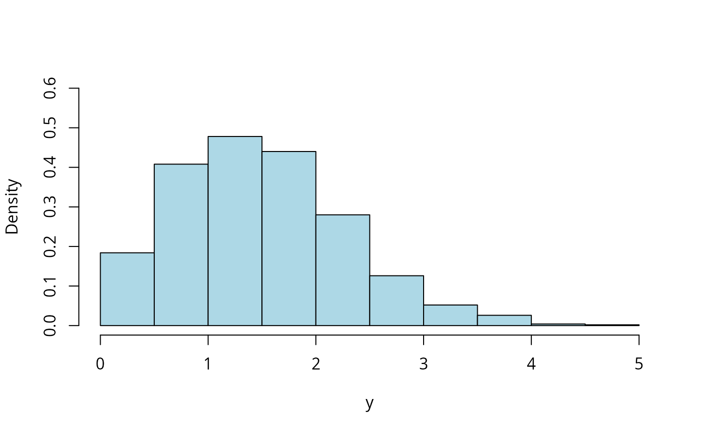 ndata <- data.frame(y1 = sqrt(rgamma(nn, shape = shape, scale = Scale/shape)))