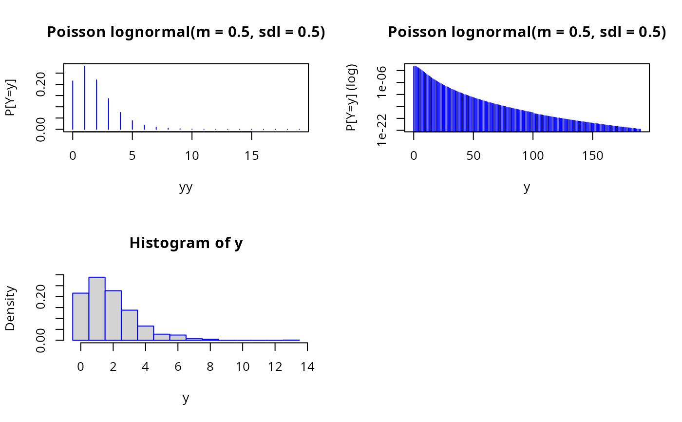 polonoUC.RdDensity, distribution function and random generation for the Poisson lognormal distribution.