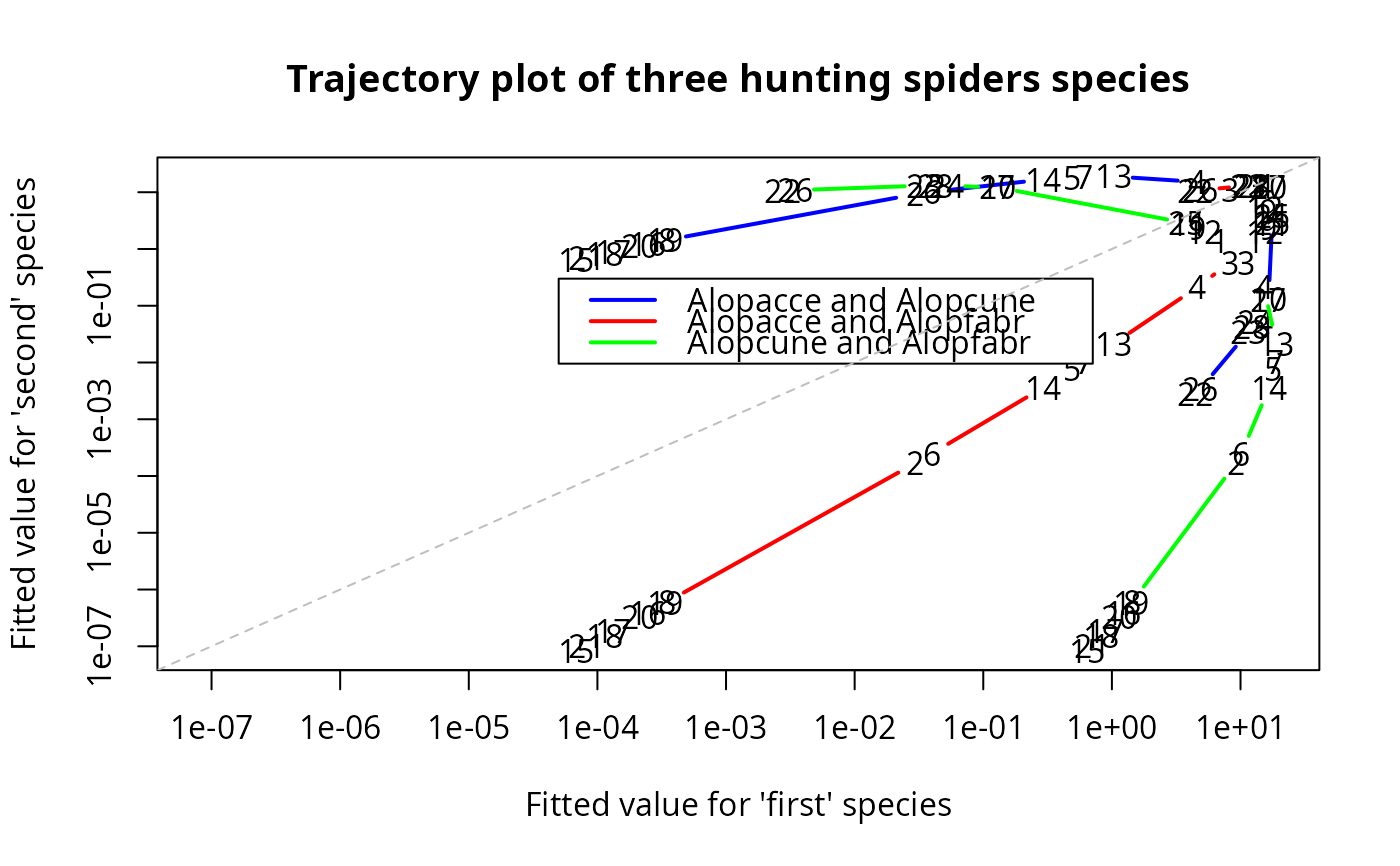 In the above, \(M\) is the number of species selected for plotting, so there will be \(M(M-1)/2\) curves/trajectories in total.