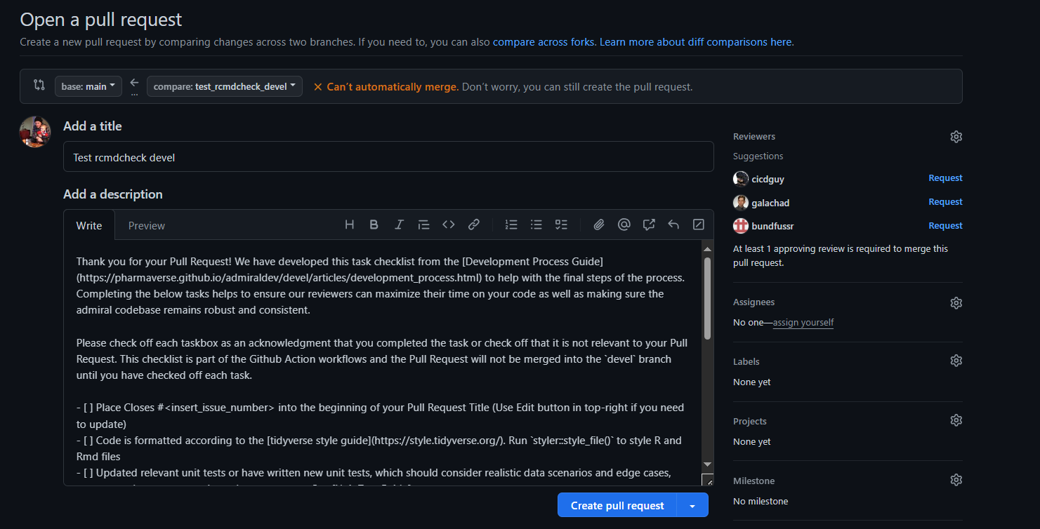 done you due diligence in creating a compliant Pull Request. GitHub will