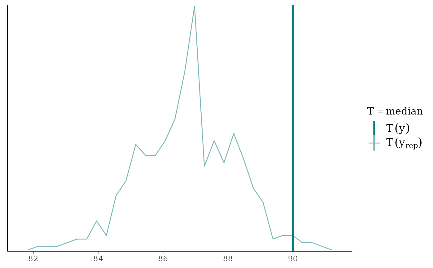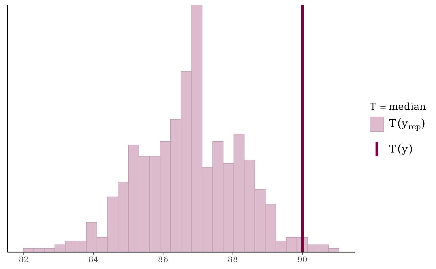 ppc_stat(y, yrep, stat = "median")