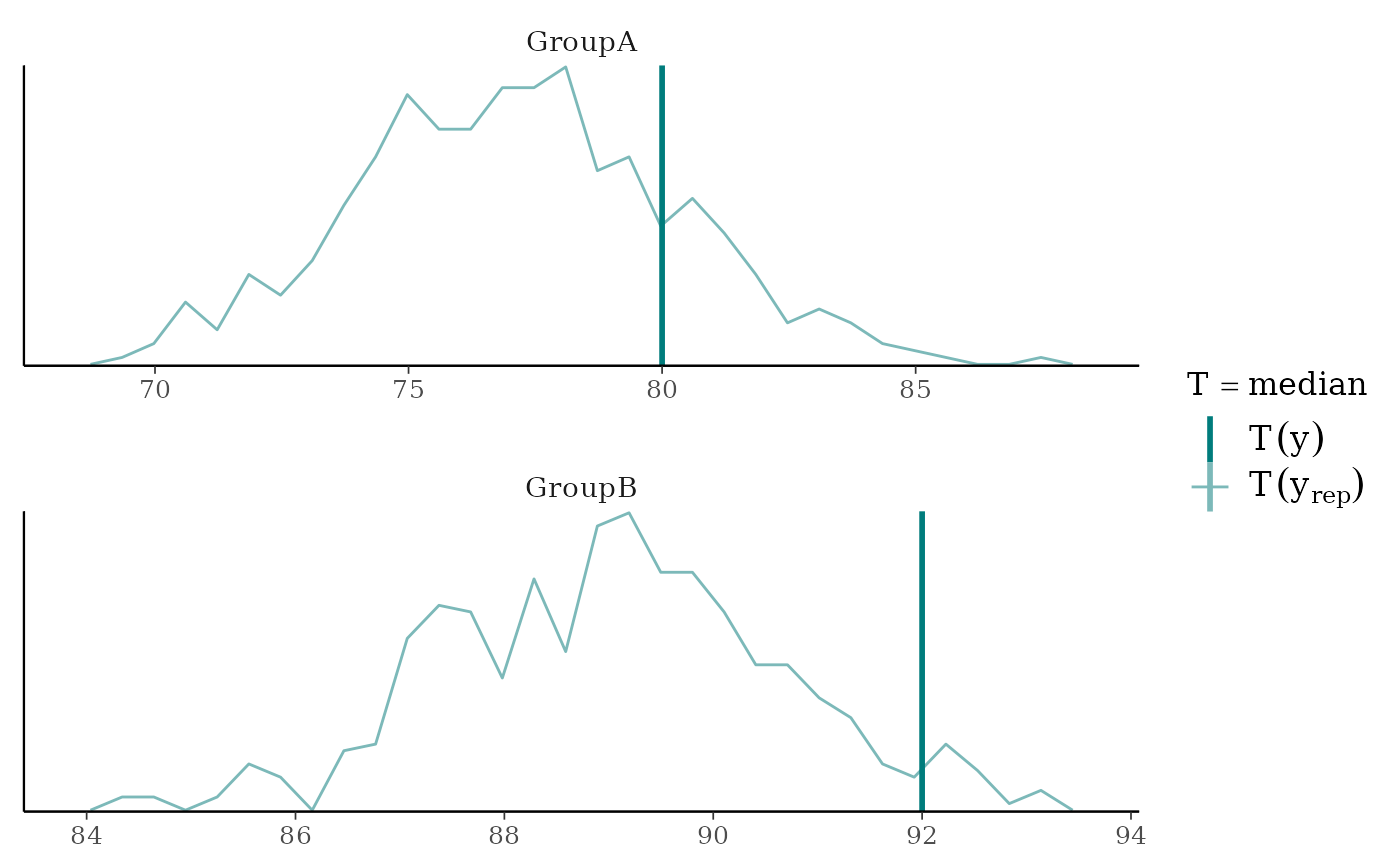 ppc_stat_grouped(),ppc_stat_freqpoly_grouped()The same as ppc_stat() and ppc_stat_freqpoly(), but a separate plot is