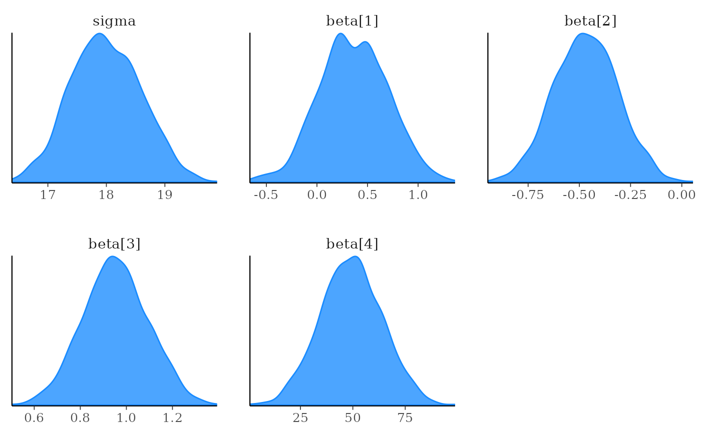 mcmc_dens(x, pars = vars(sigma, contains("beta")))