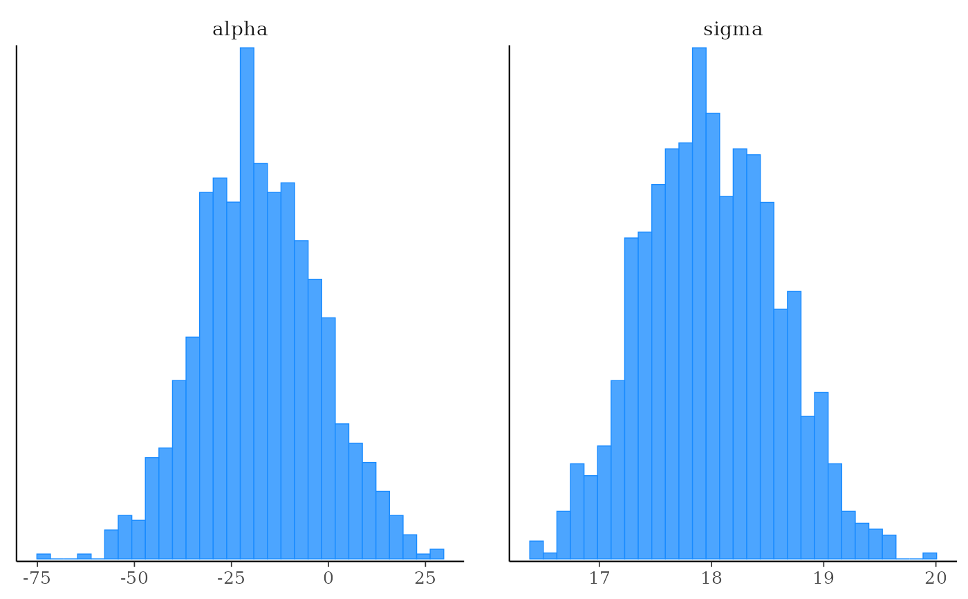 mcmc_hist(x, pars = vars(-contains("beta")))