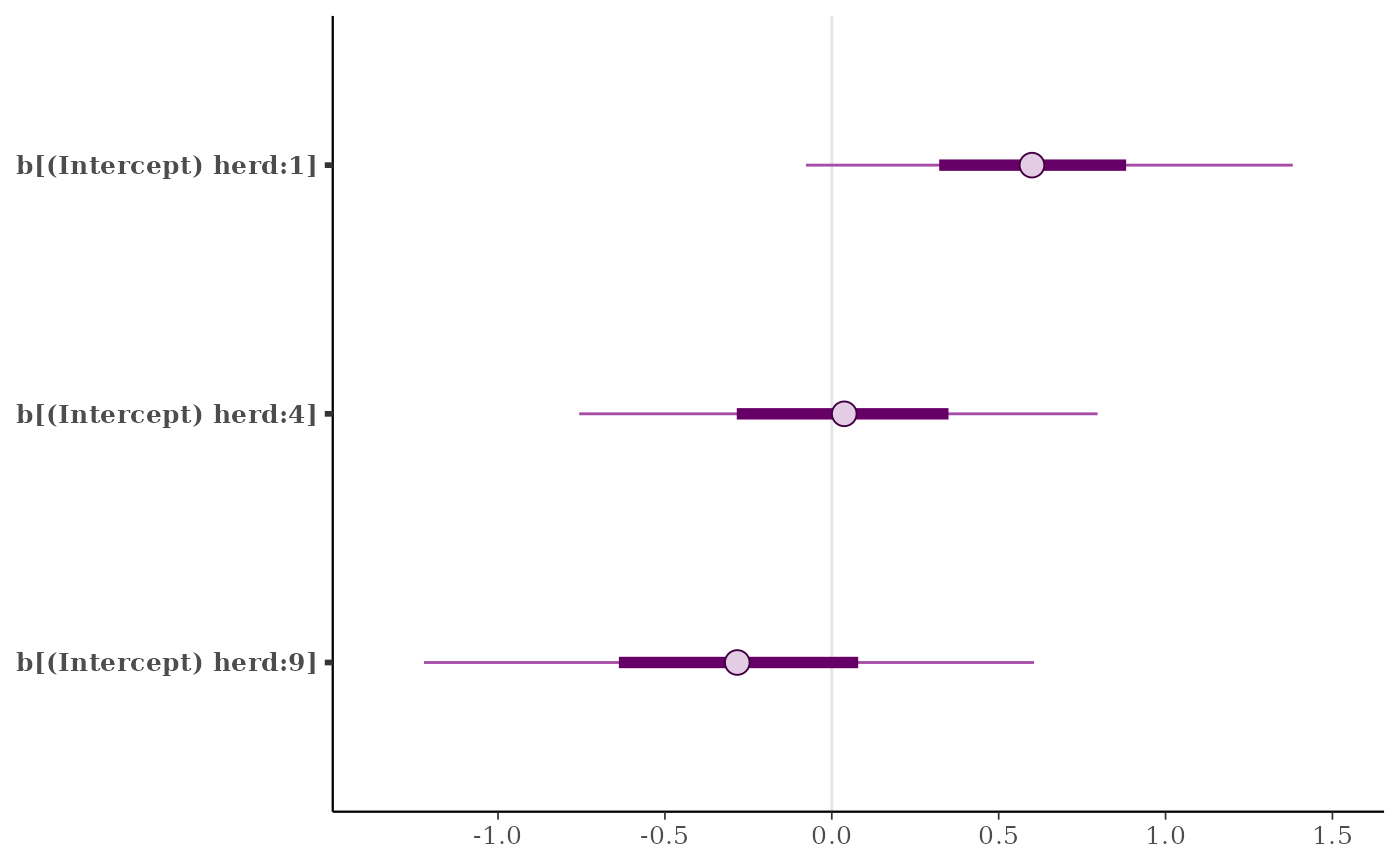 mcmc_intervals(posterior, pars = vars(contains("herd"), -contains("Sigma")))